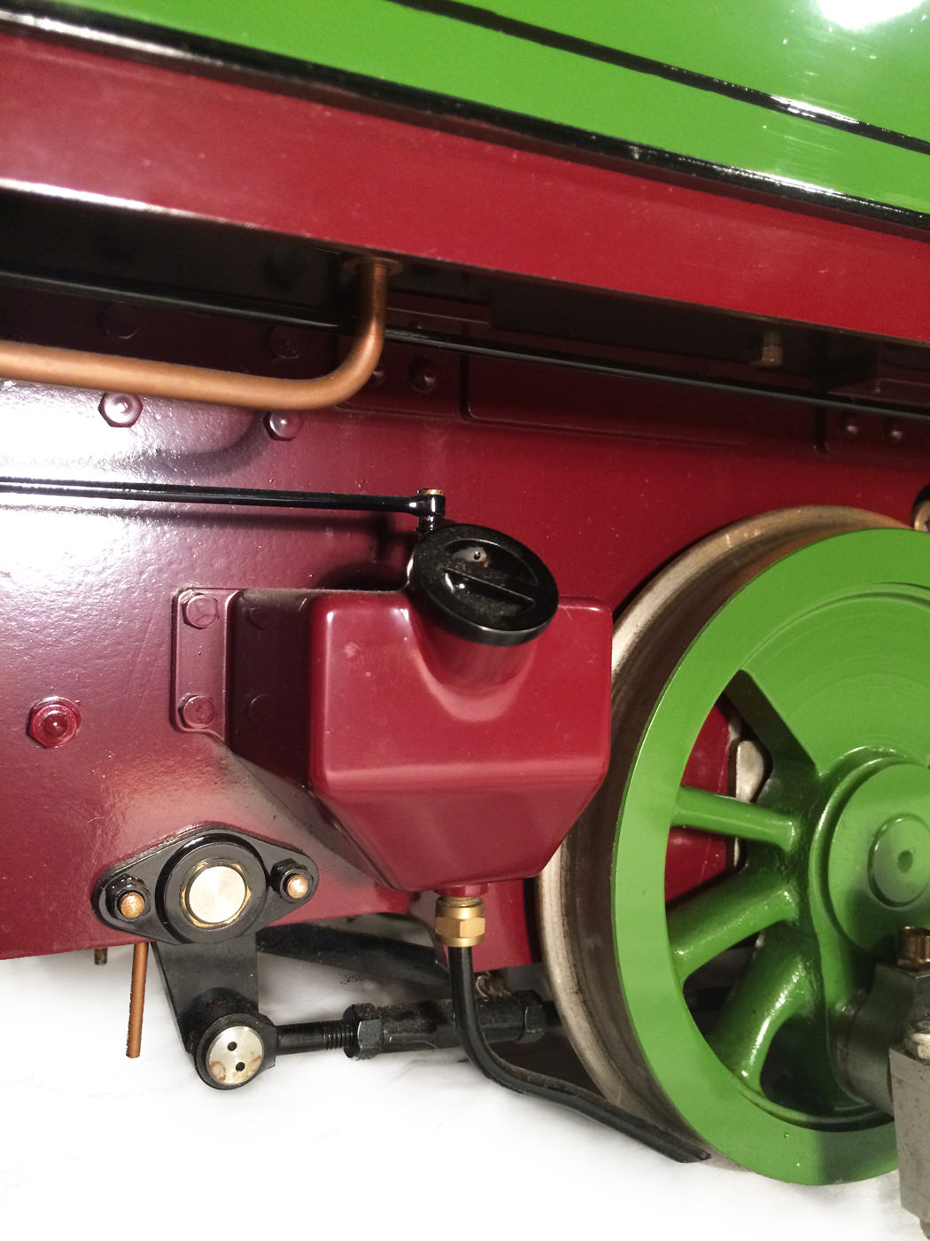 There are twin ratchet mechanical lubricators, eccentric driven feed pump with bypass, and lovely extra details like working sand box rigging.