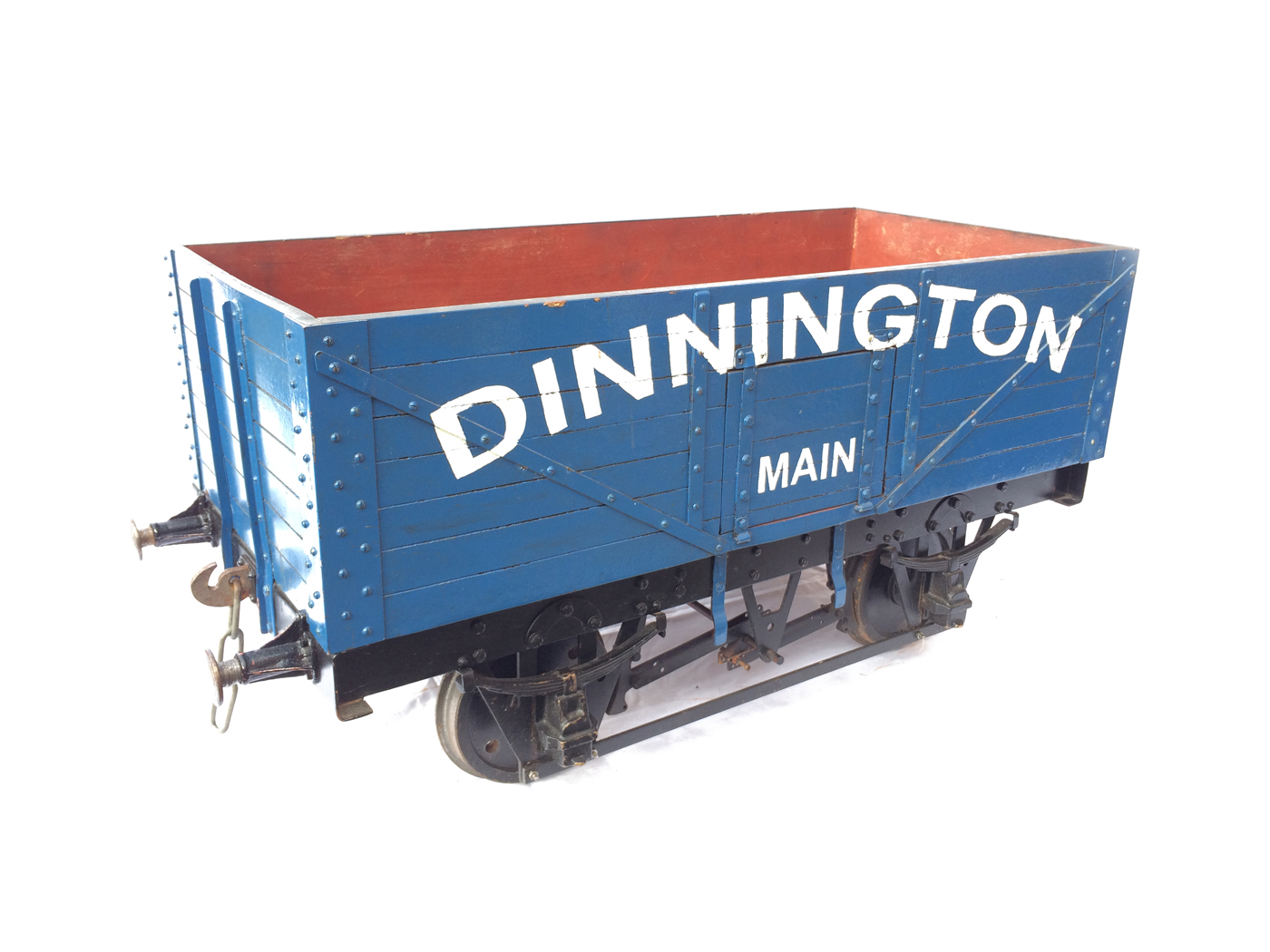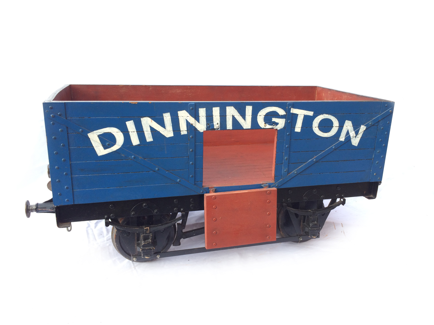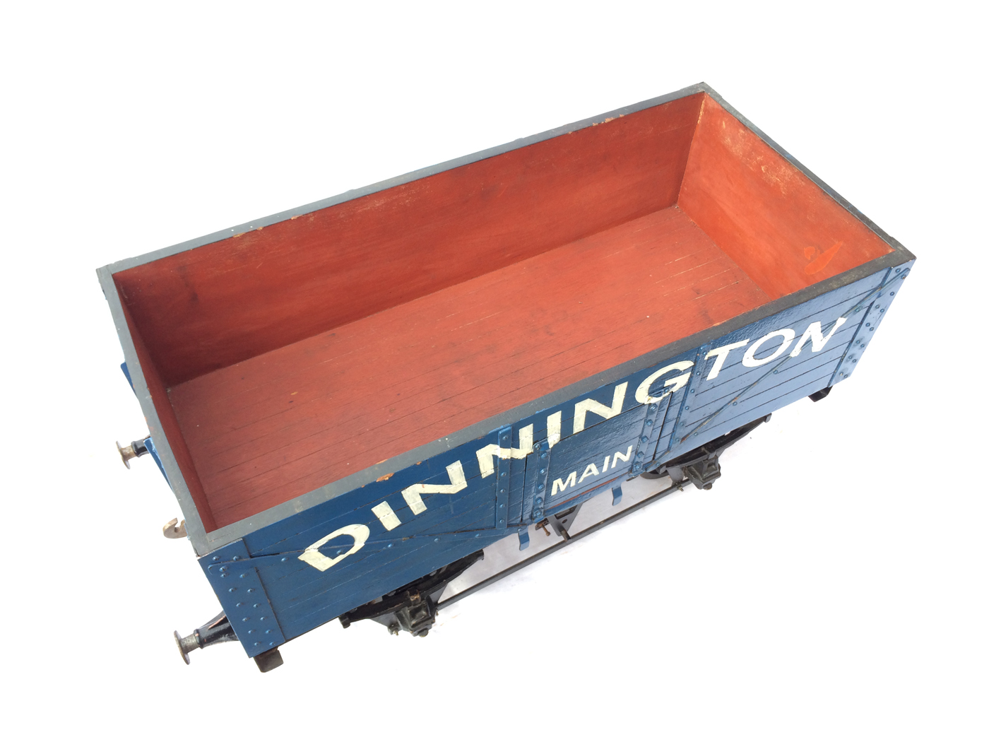 Here we have a scratch built 7 1/4" colliery wagon, painted in Dinnington Colliery livery. This is one that we've had for years, and since our move to play more with 5" it,..... along with the rest of our 7 1/4" fleet has fallen into diss-use. Time to offer it to pastures new rather than see it languish any longer at the back of the store!