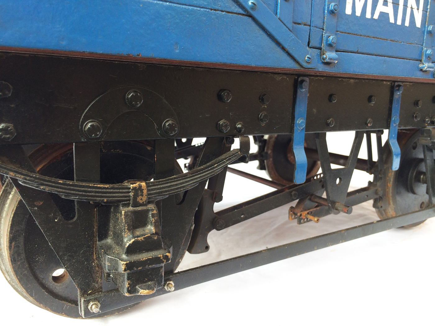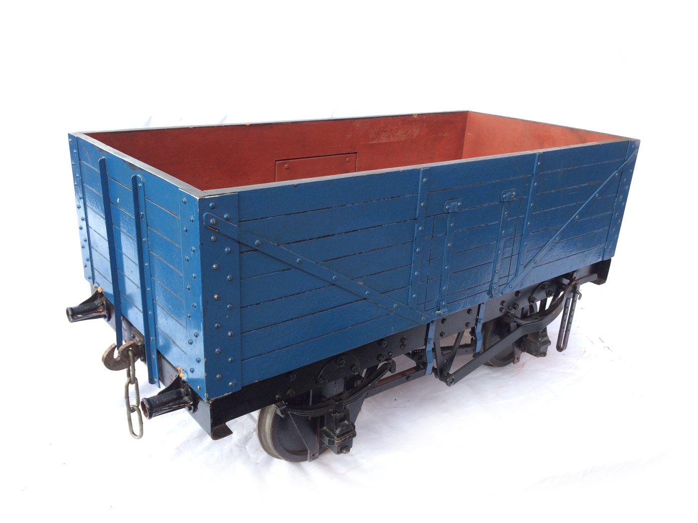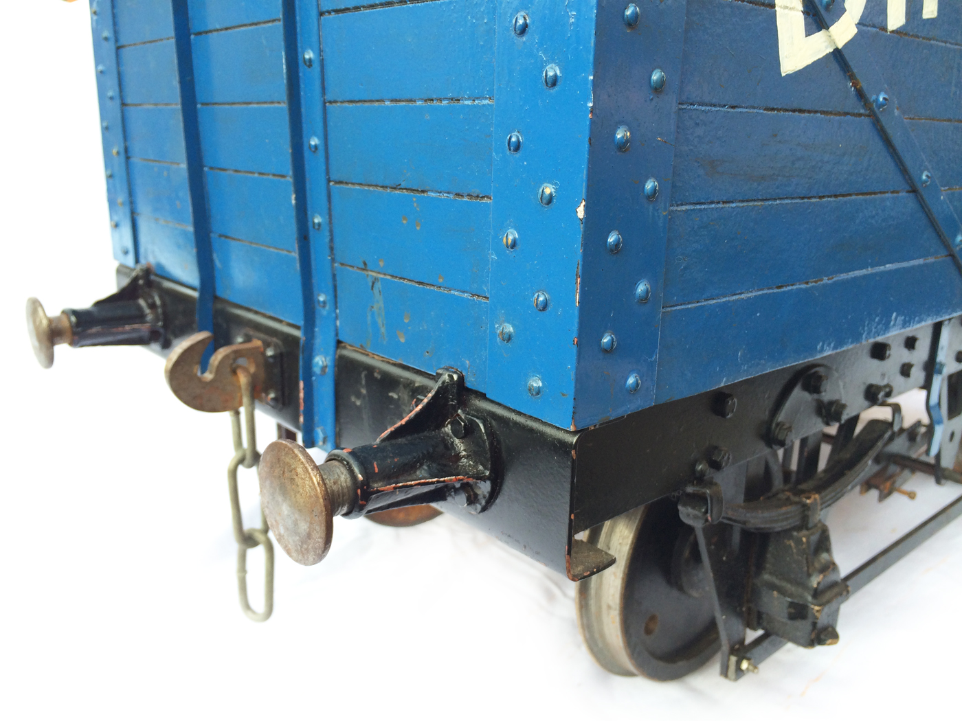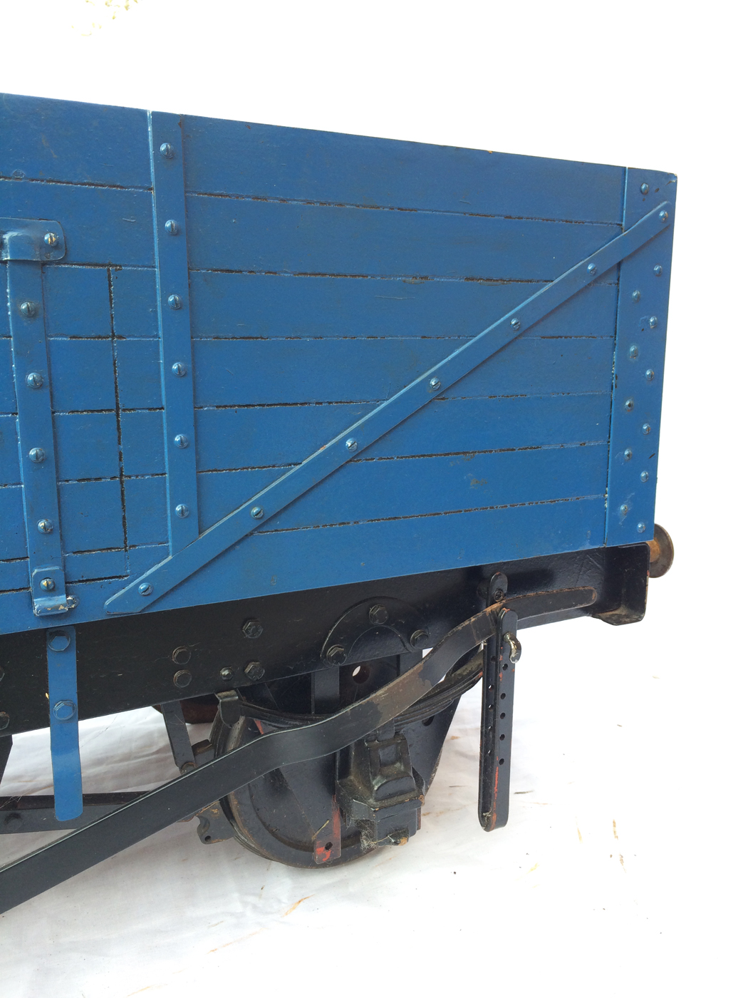 Here we have a scratch built 7 1/4" colliery wagon, painted in Dinnington Colliery livery. This is one that we've had for years, and since our move to play more with 5" it,..... along with the rest of our 7 1/4" fleet has fallen into diss-use. Time to offer it to pastures new rather than see it languish any longer at the back of the store!