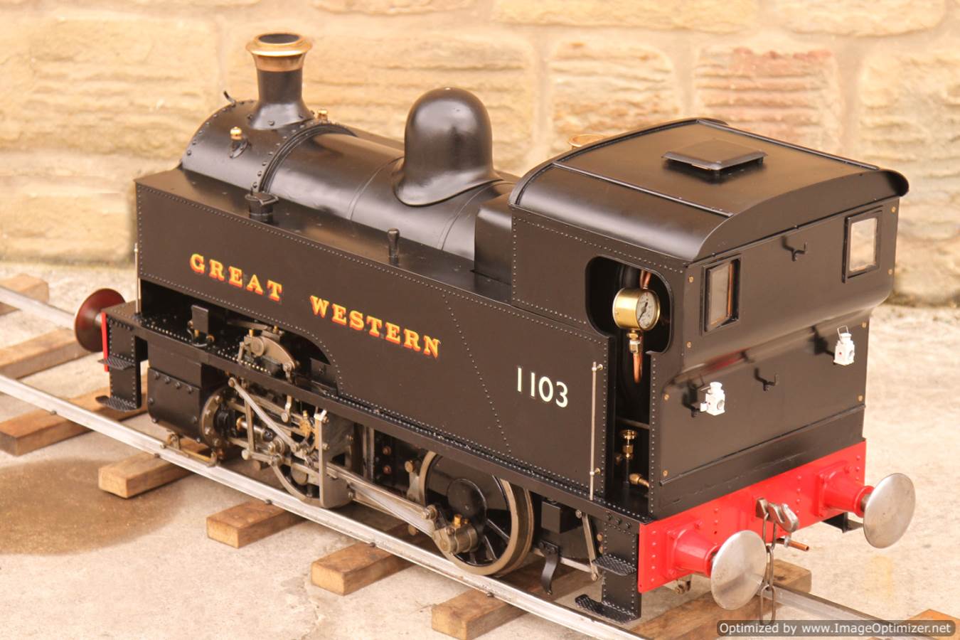 Here we have a competently made 7 1/4" gauge GWR 11xx Dock Tank, built to the well respected, (and nearly 100 years old now) design 'Midge'.  The model was completed in 1974 and until recently had only really been test steamed before being placed on static display in a private collection.  She was lifted from her slumber earlier in the year, commissioned and is now ready to play.