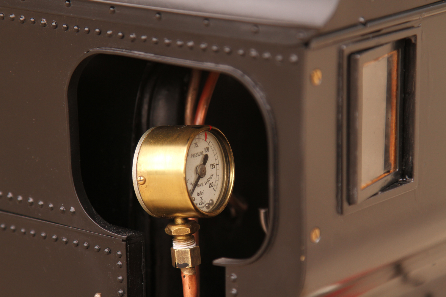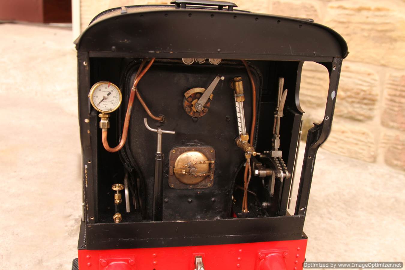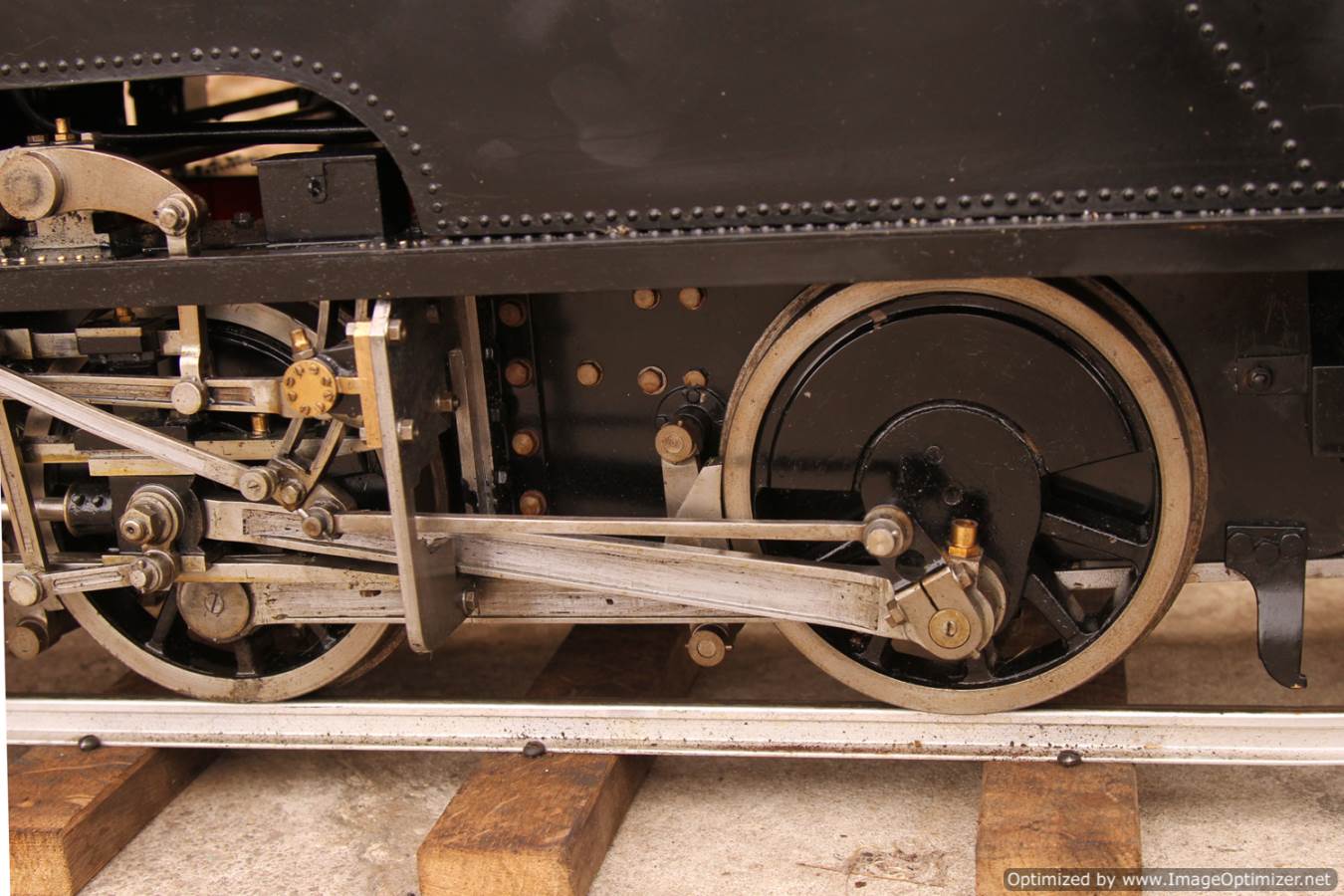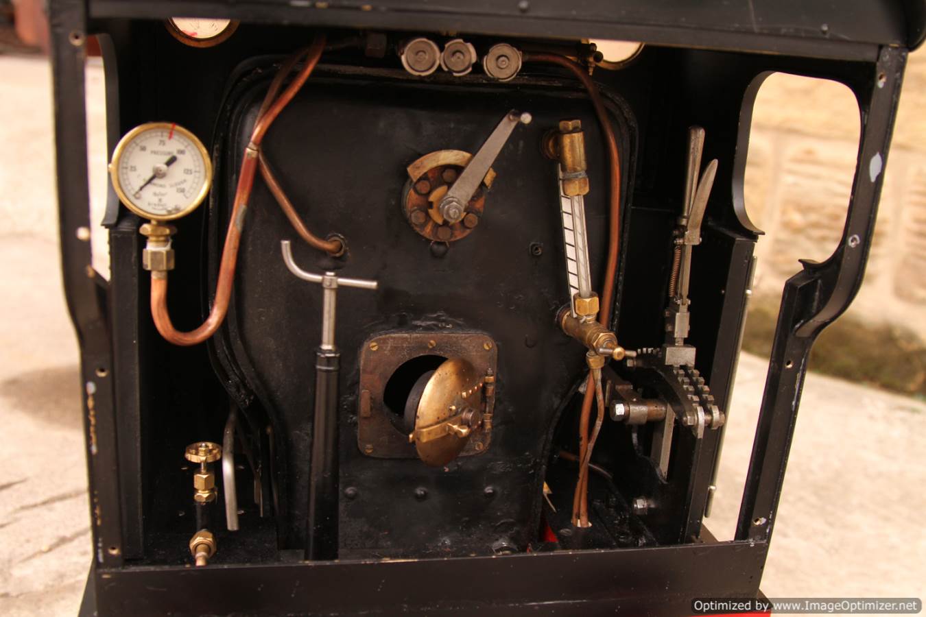 The boiler is a Silver soldered copper one that comes with fresh certificates.  The cylinders are cast iron with slide valves actuated by Walschaert's gear.  Lubrication is mechanical and on the running boards.   There is an injector fitted as well as an axle pump with footplate mounted bypass valve.  The tanks are at present unemployed, and she is plumbed up to take water from your riding truck.  The tanks could therefore be relatively easily adapted to take the water,..... or,.... you could sneakily hide a fair wodge of lead in them if you wished to pull the skin of numerous rice pudding dishes simultaneously!