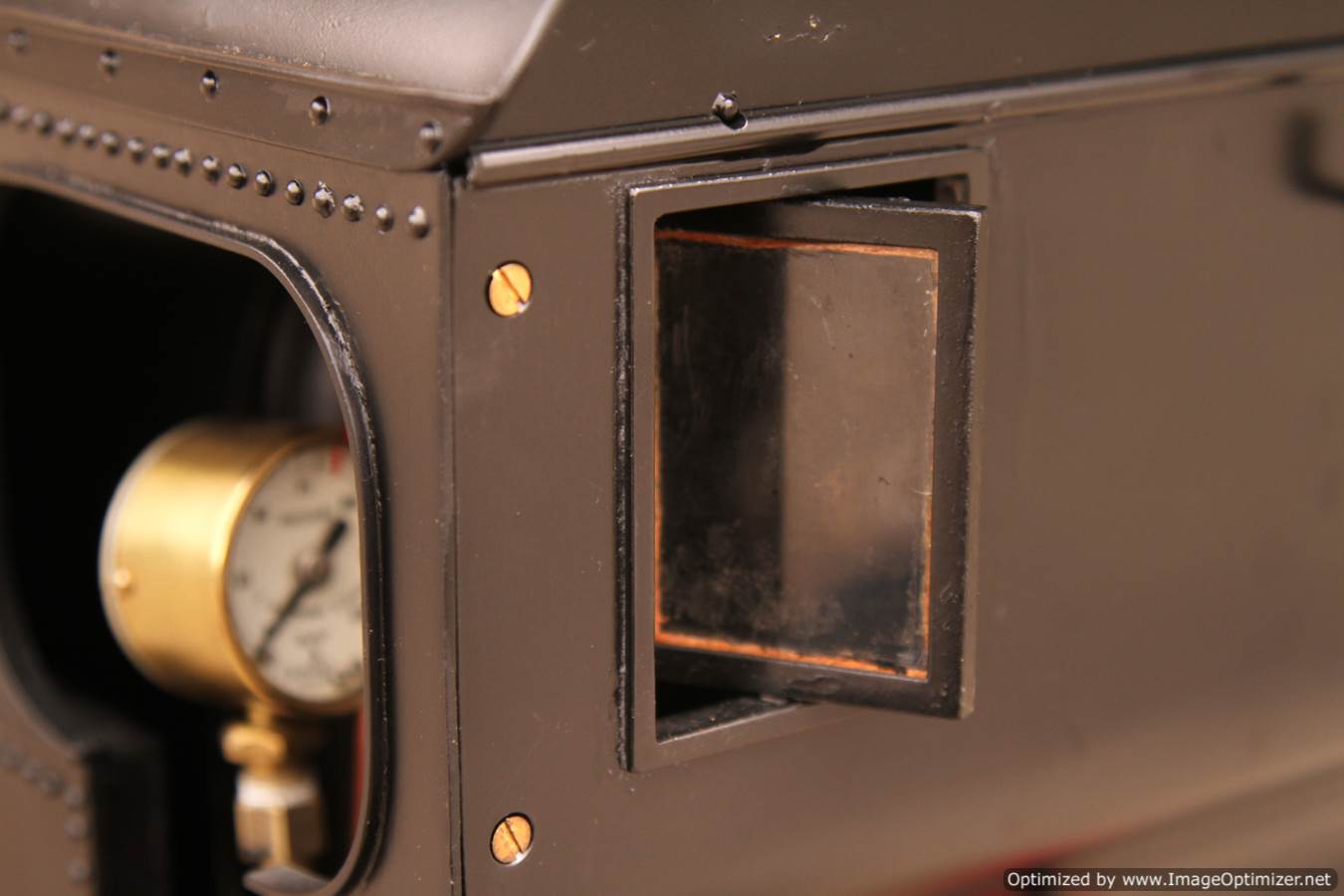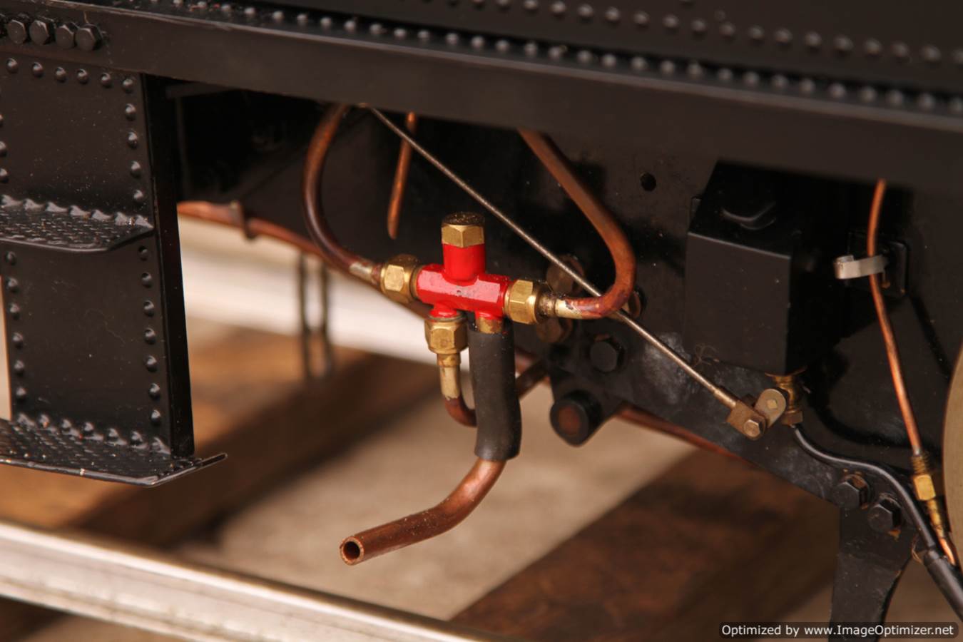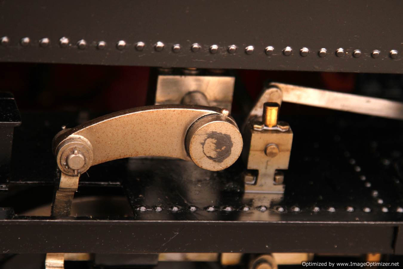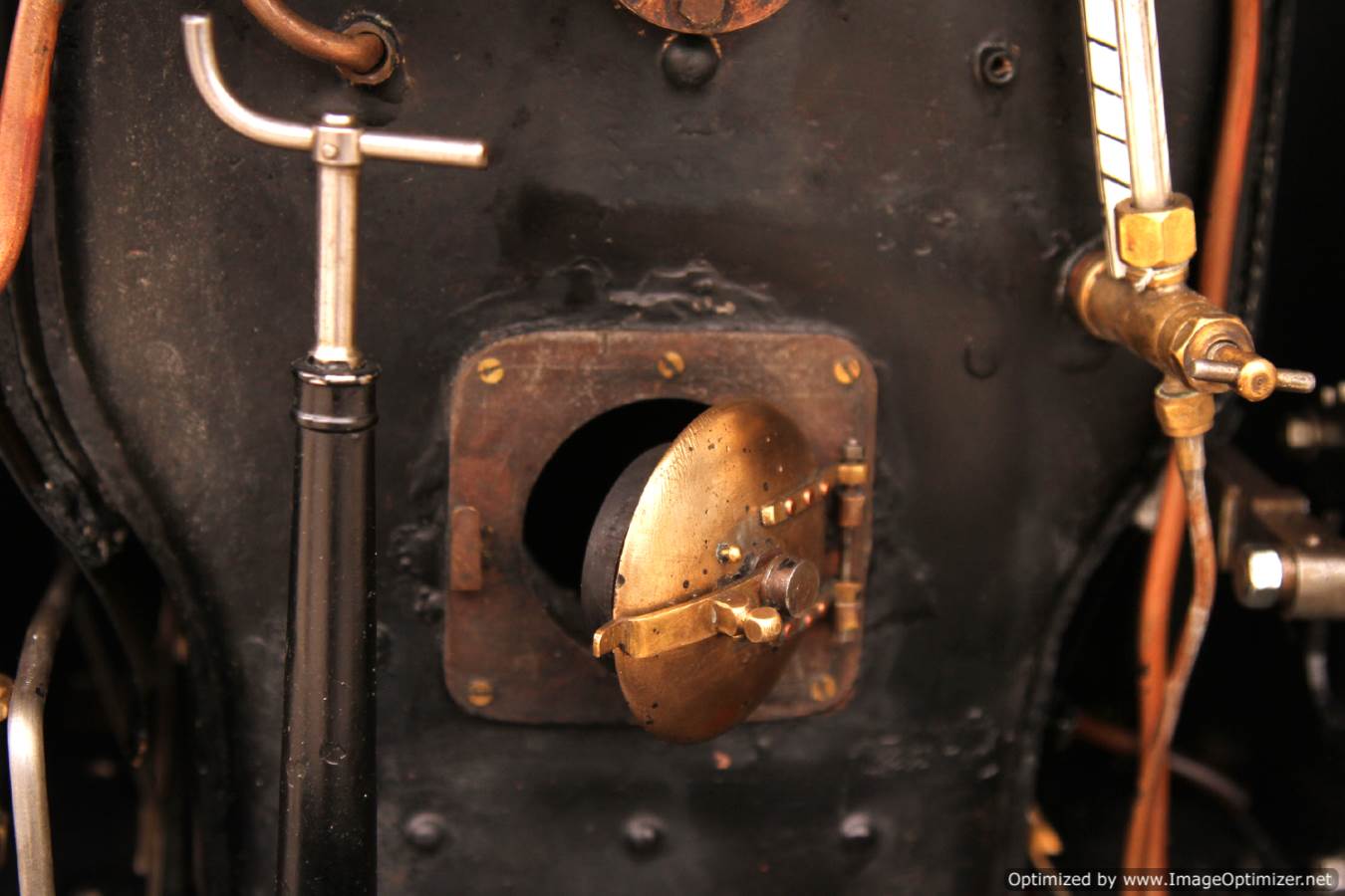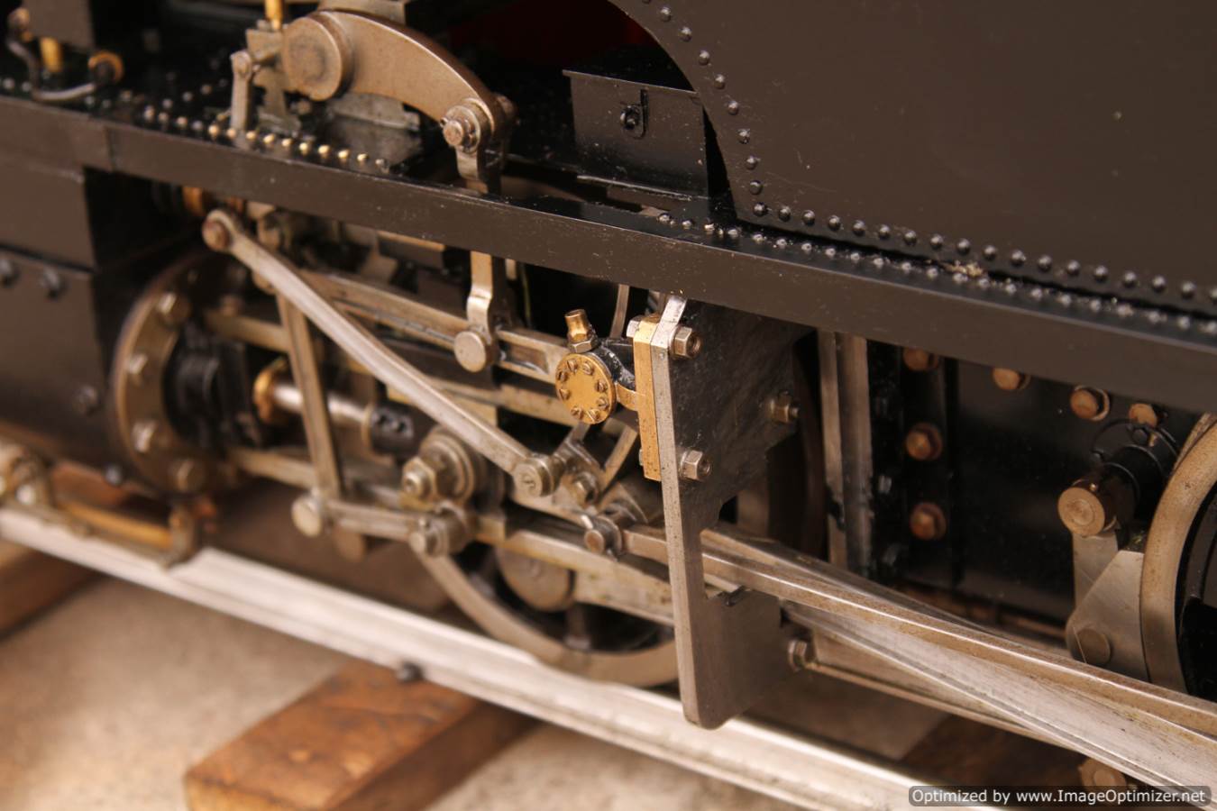 The boiler is a Silver soldered copper one that comes with fresh certificates.  The cylinders are cast iron with slide valves actuated by Walschaert's gear.  Lubrication is mechanical and on the running boards.   There is an injector fitted as well as an axle pump with footplate mounted bypass valve.  The tanks are at present unemployed, and she is plumbed up to take water from your riding truck.  The tanks could therefore be relatively easily adapted to take the water,..... or,.... you could sneakily hide a fair wodge of lead in them if you wished to pull the skin of numerous rice pudding dishes simultaneously!