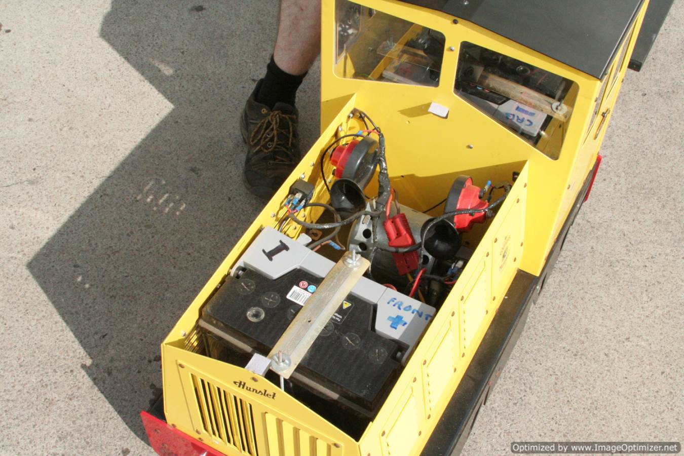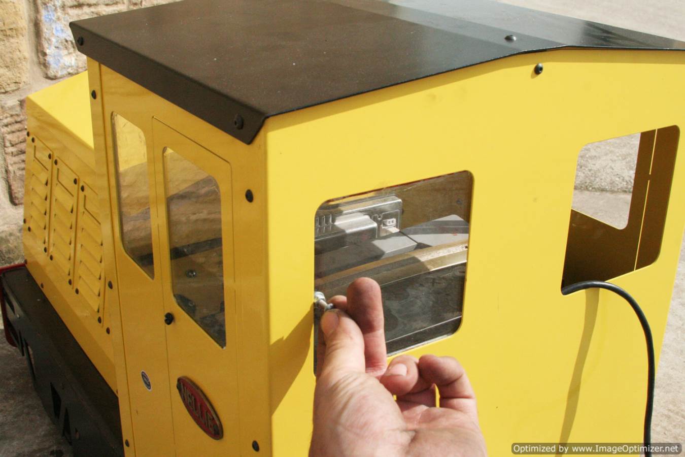 Here we have a brand new 7 1/4" gauge 0-4-0 Hunslet esque battery electric made by Phoenix locomotives. This is Phoenix's 'Project Loco', one of their first loco designs which has proved very popular selling all over the world. The loco is powerful enough to pull 8-10 passengers and keep performing all day on one battery charge. It is good to negotiate very tight radii right down to 10ft.