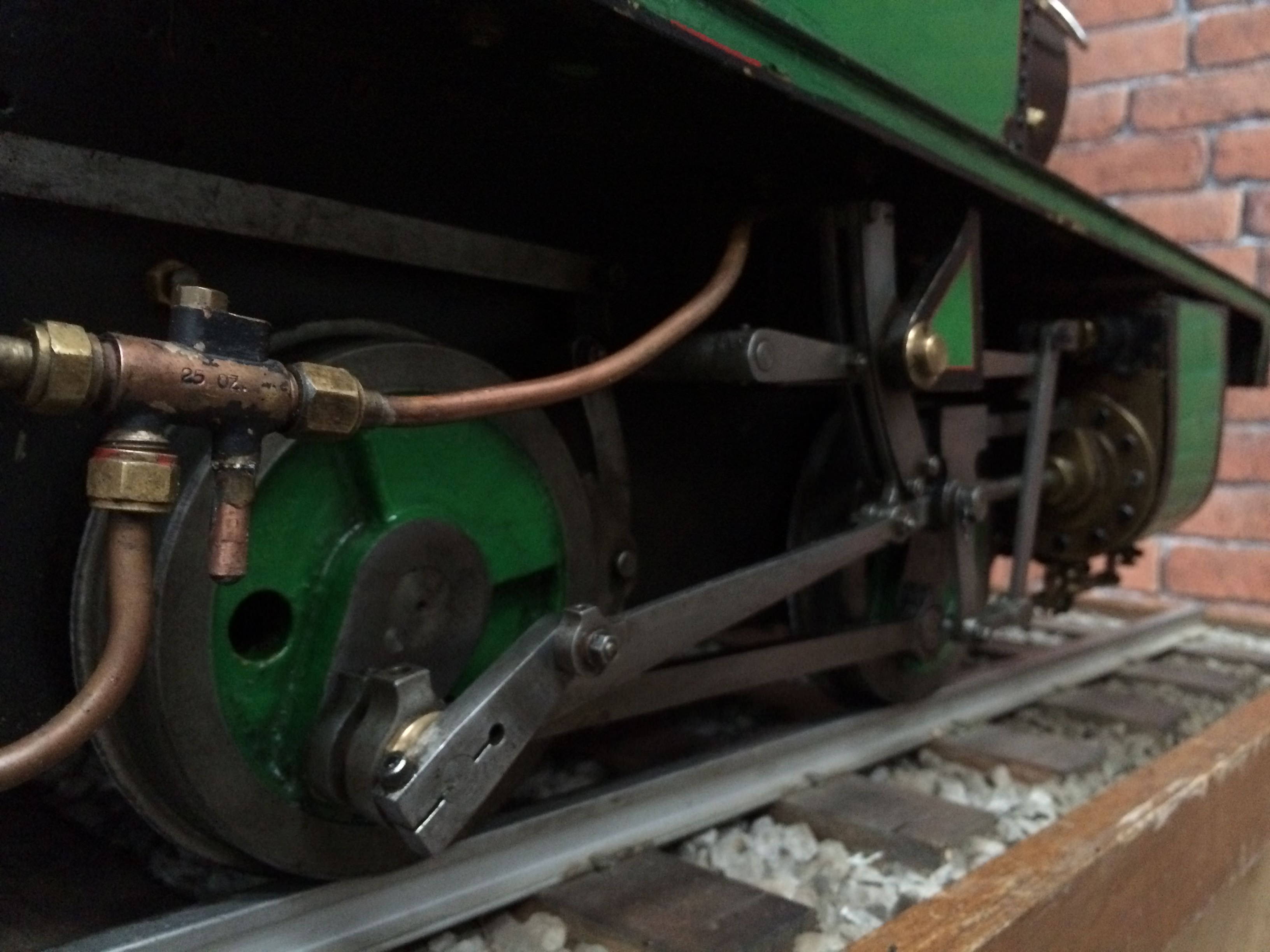 This is an older model, so the paintwork, particularly on the boiler is a bit tired.  That said, the original workmanship was pretty good, so mechanically, and cosmetically from a build quality stand point it's still very presentable.  It has an injector, a hand pump in the tank, and a mechanical axle pump, with footplate bypass valve for the water.  The draincocks are footplate operated, and lubrication is mechanical ratchet hidden as usual under the front footplate.