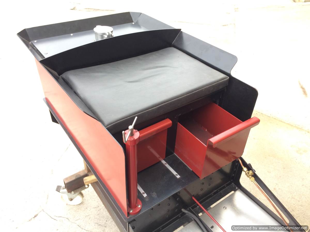 Water is from either the injector, or the axle pumps with footplate mounted bypas valve.  There is also a footplate mounted hand pump should you require it.  Lubrication is provided by the mechanicals on each side of the valve gear.  There's a hand brake on the loco, a hand brake on the tender, a quick grab brake operating on a disk on the tender,..... steam brakes on the locomotive,..... and Vacuum brakes plumbed through for the train, so stopping shouldn't be a problem unless you run into the buffers trying to decide which lever to pull!  The tender has a couple of lovely draws on aluminium runners in it for the coal and for your spare chains and tools, in fact all in all this is one of the neatest and best thought out Sweet William that we've seen.