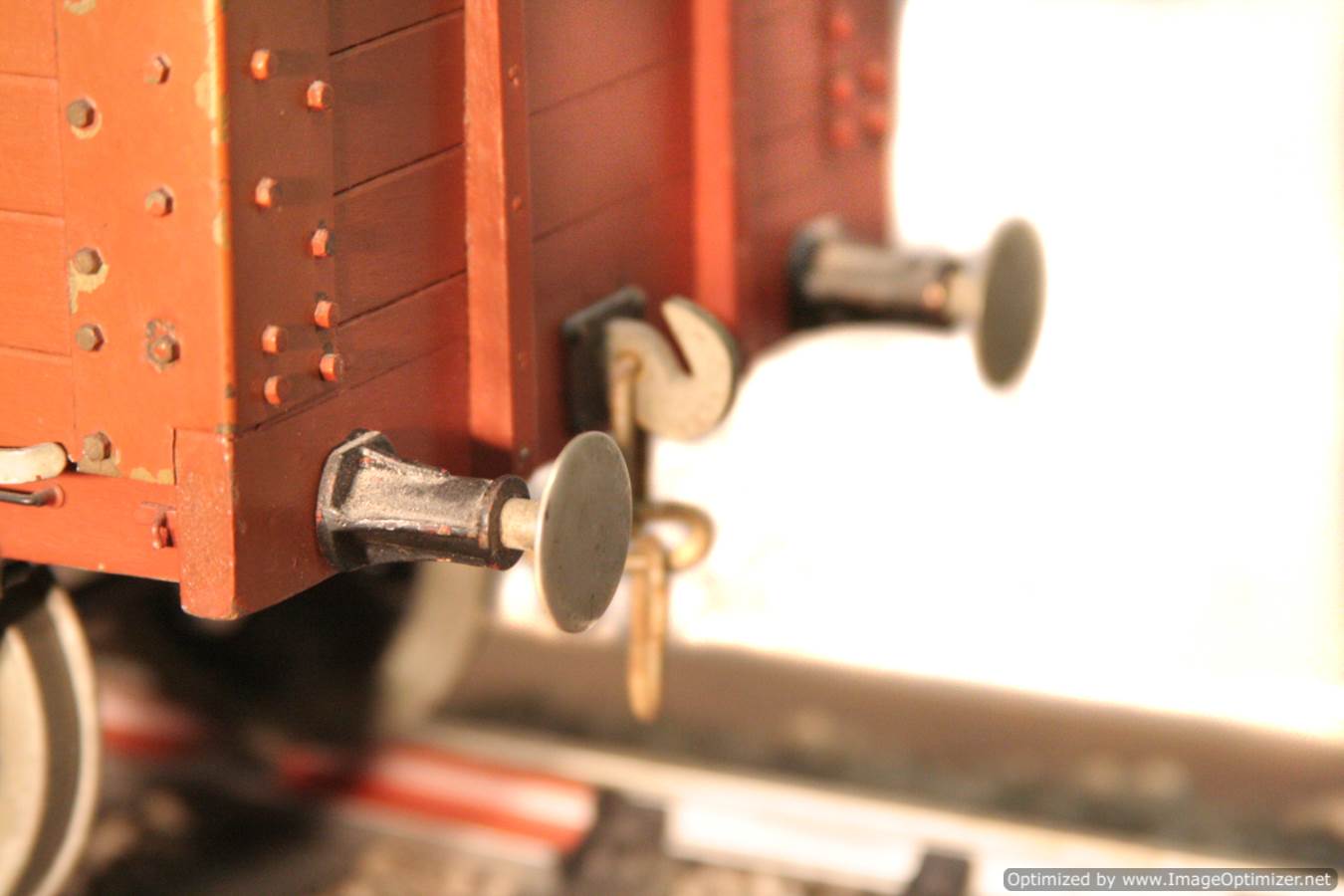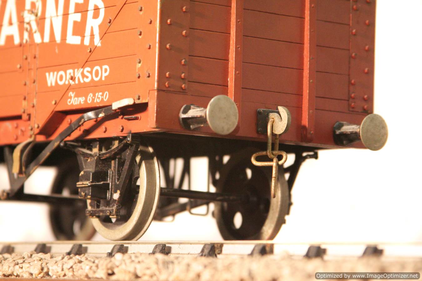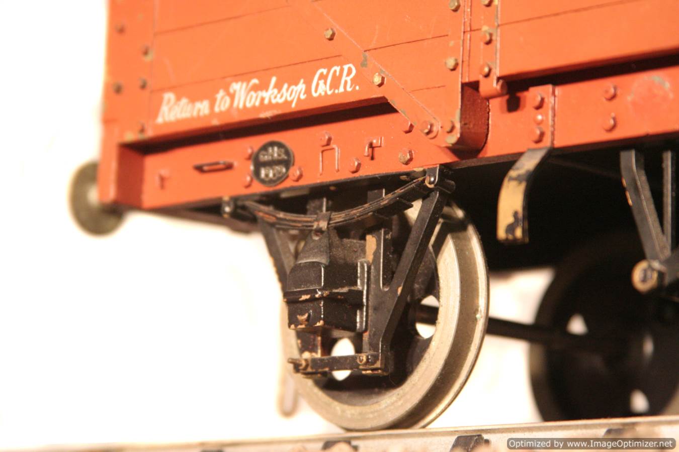 Here we have another rather beautifully made scale model of a wooden framed 6 plank mineral wagon. Built we think to 1/16th scale for 3 1/4" gauge. There is room to 'tweak' out the wheelsets to fit on 3 1/2" gauge, where the wagon will work, but look a little on the small side.