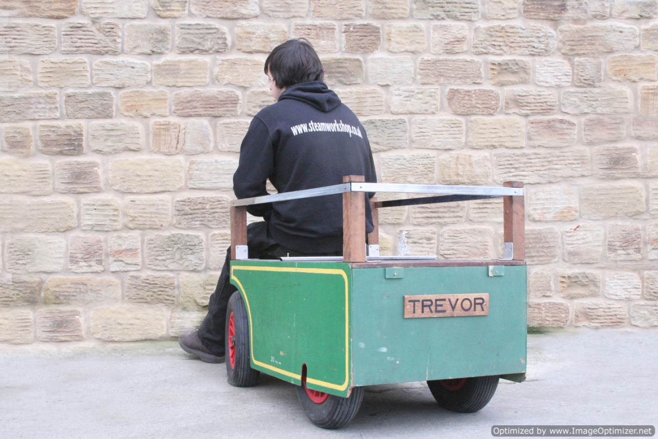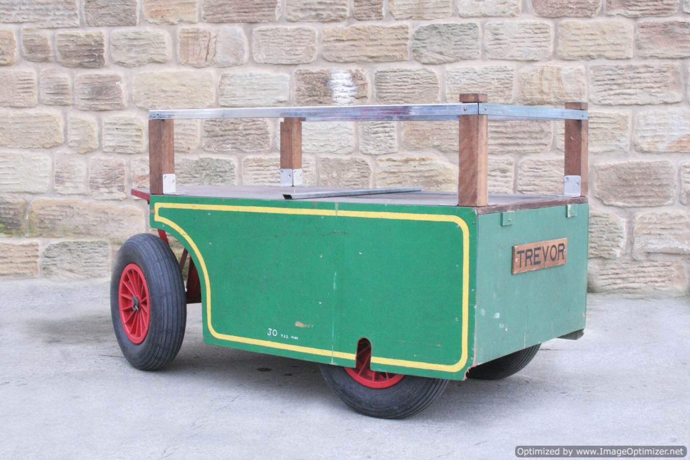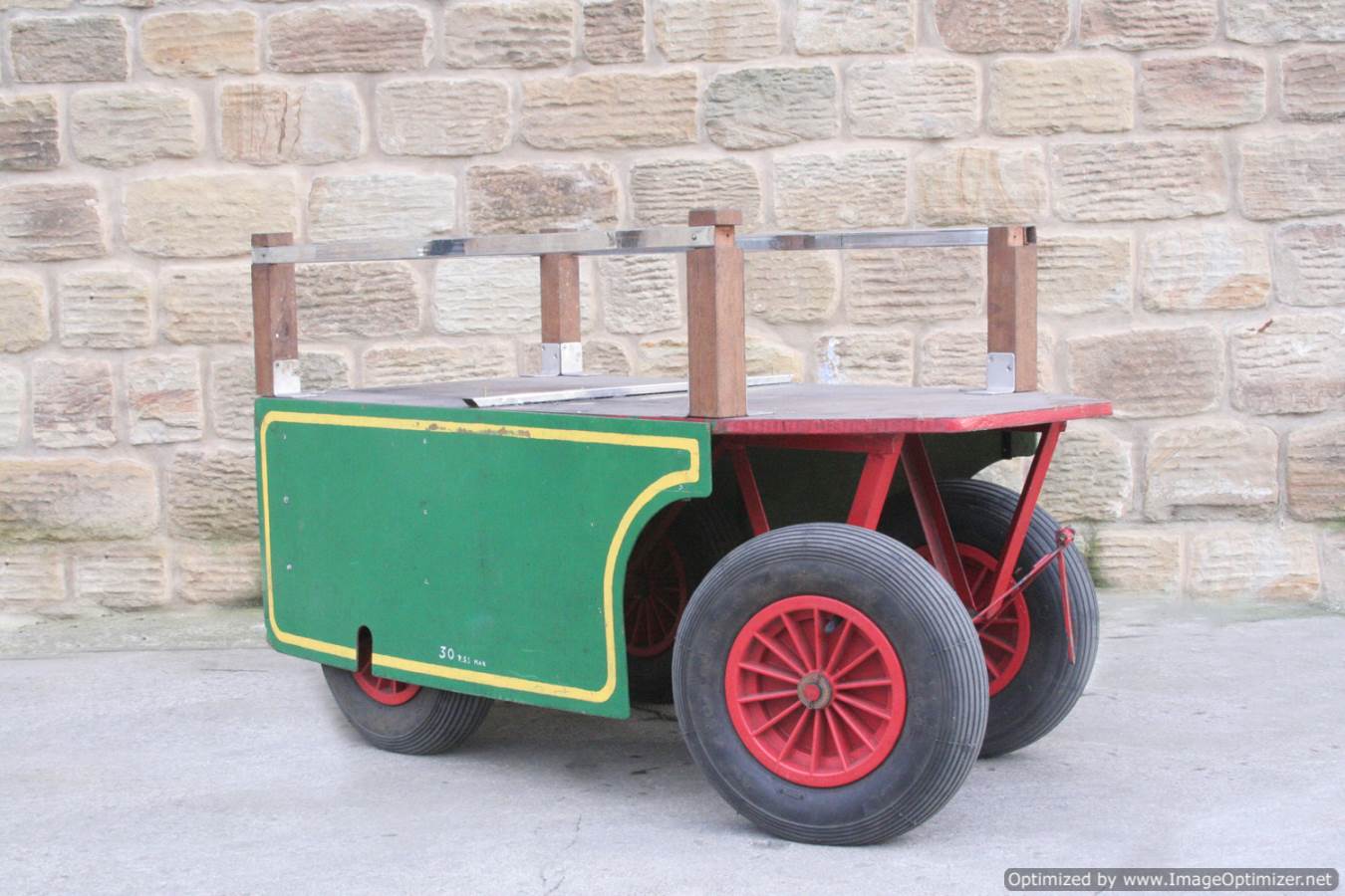 Here we have a 4" scale driving truck. This is a substantially wheeled and very comfortably riding wagon. Ideal for transporting extra coal and water, or even a bunch of kids with the chrome rails keeping them on board! As always with the wagons, hopefully the photographs should be able to tell you the fairly straight forward story!