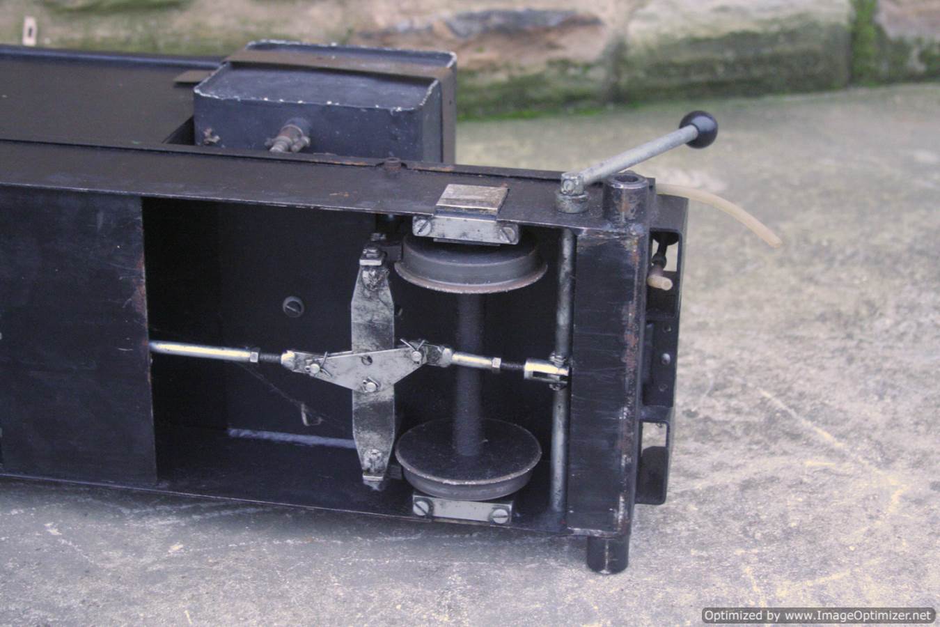 Here we have a 5" gauge ground level driving truck. Braked, and fitted with a hand pump fed from a water tank, this is ideal to go behind your Sweet Pea or other narrow gauge loco.