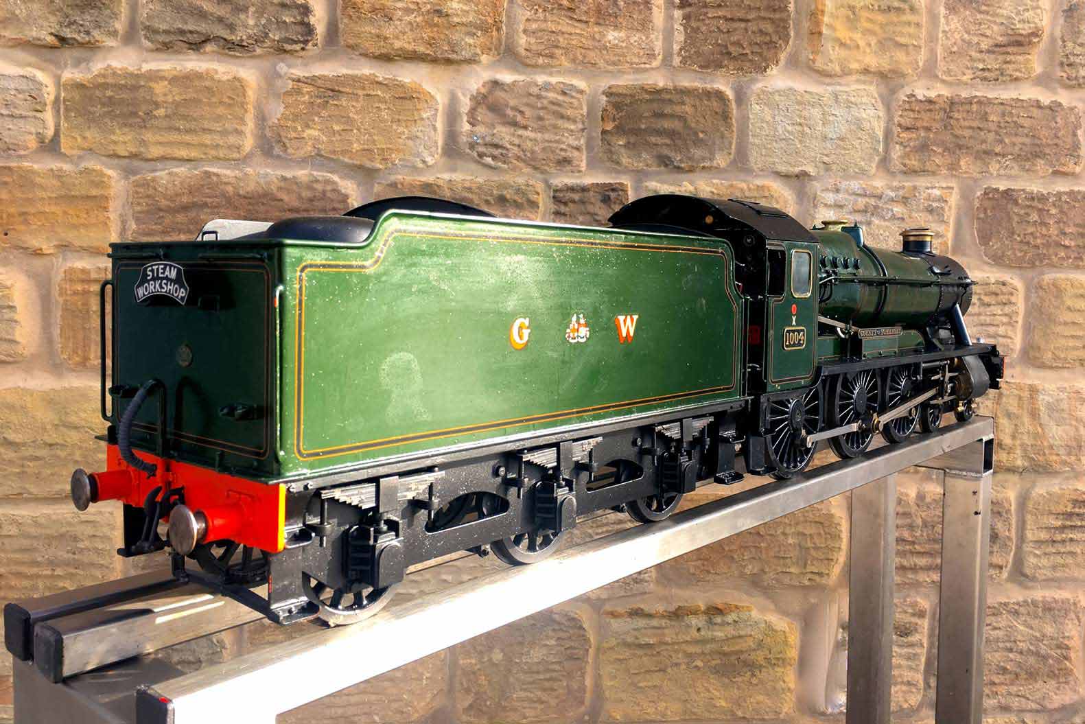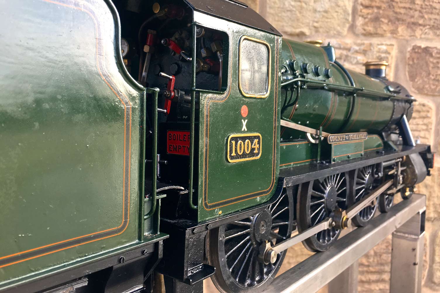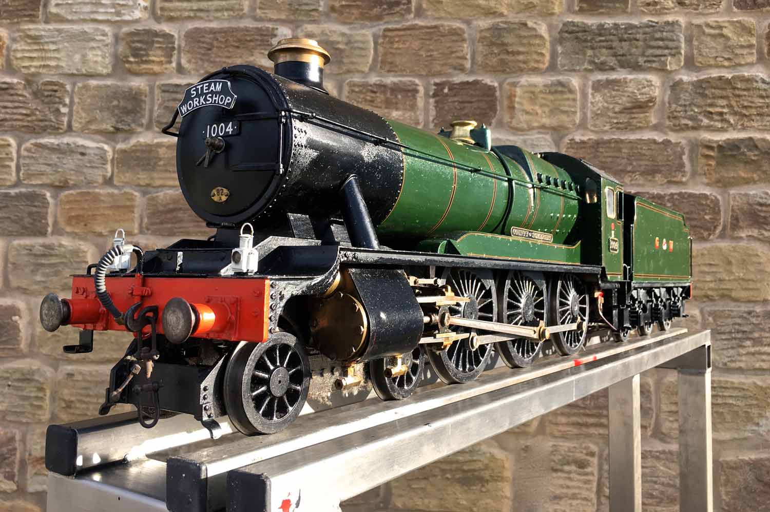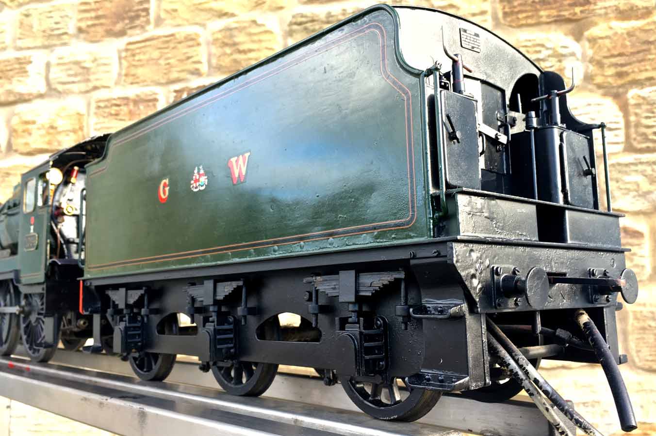 Here we have a nicely made 3 1/2" GWR Hawksworth County, 1004 'County of Somerset'. We've had a few GWR counties through before and they make a nice looking model, and the design certainly seems to perform well. There's a lot of nice detail on this one, the model engineer has certainly taken his time on the build and not just built to the drawings. The tender particularly, as you'll see from the photos has a very good level of detail with all the tool lockers there and working,...... not something that you usually find on a 3 1/2" model.
