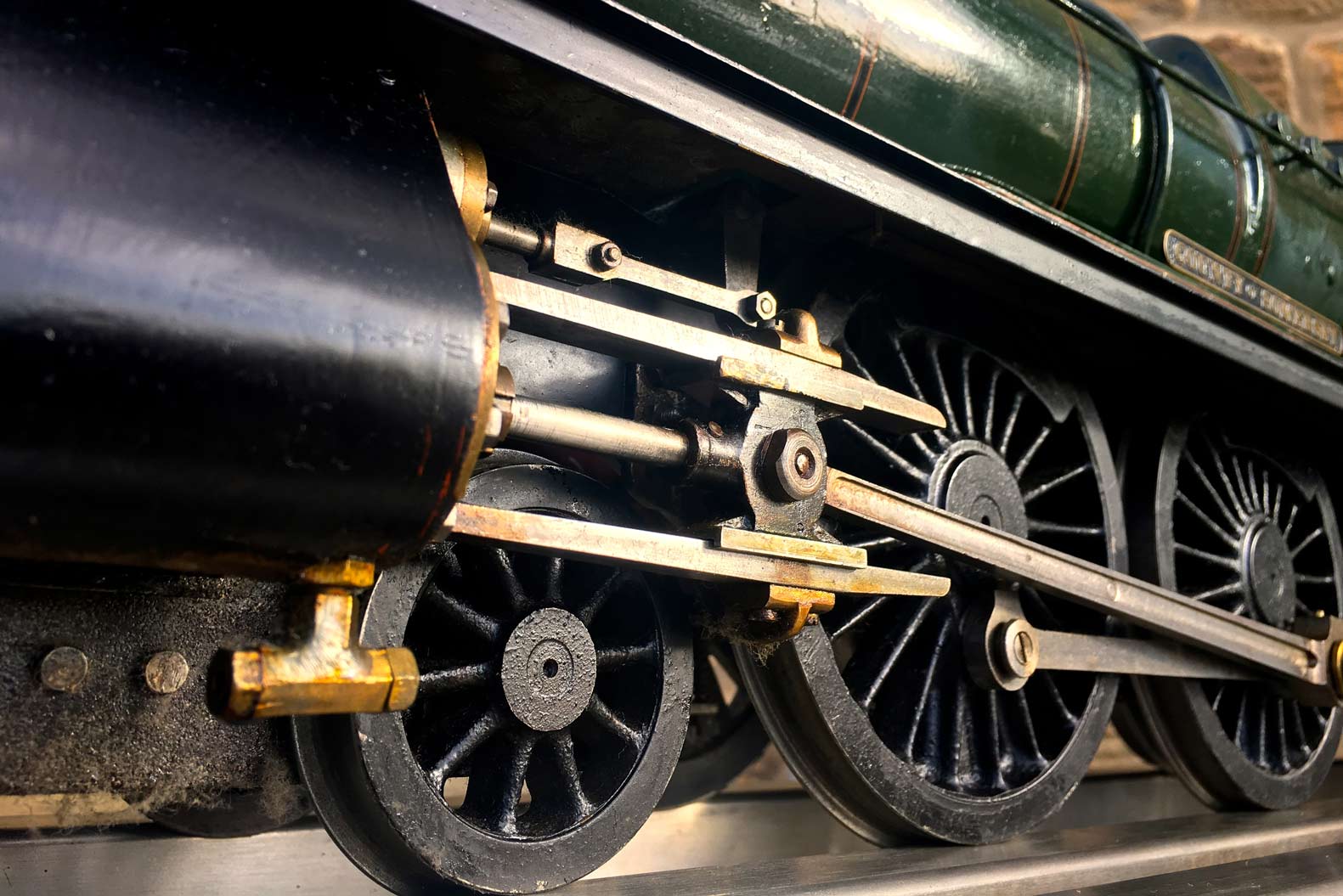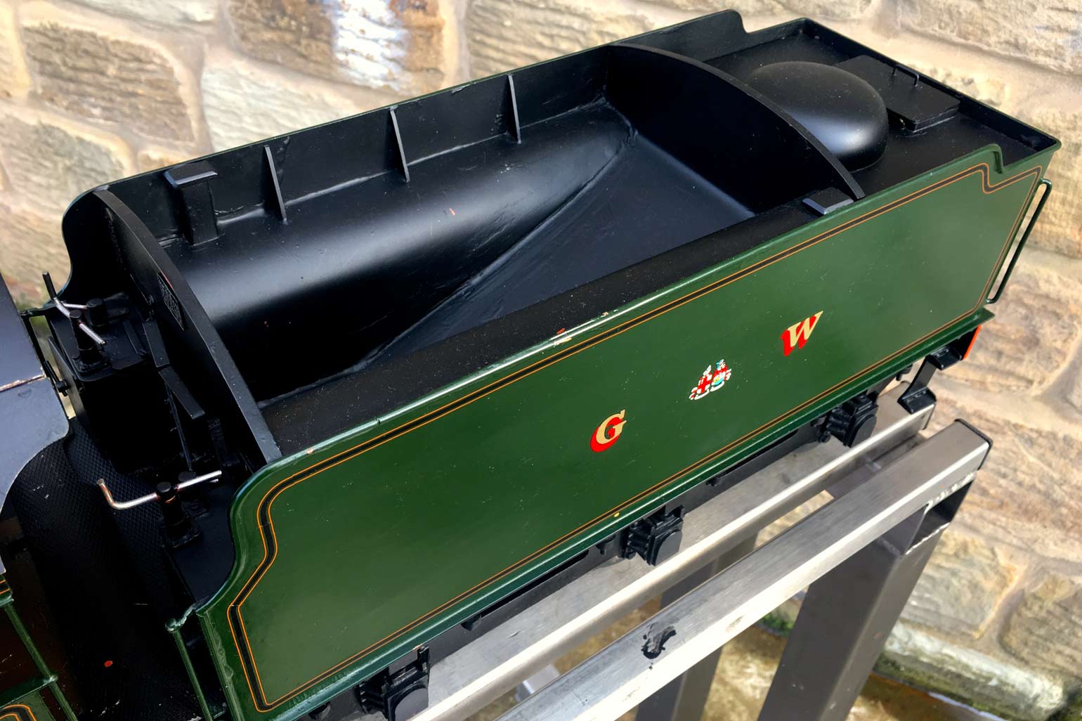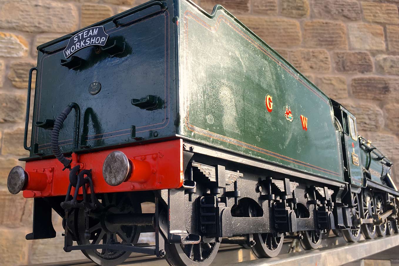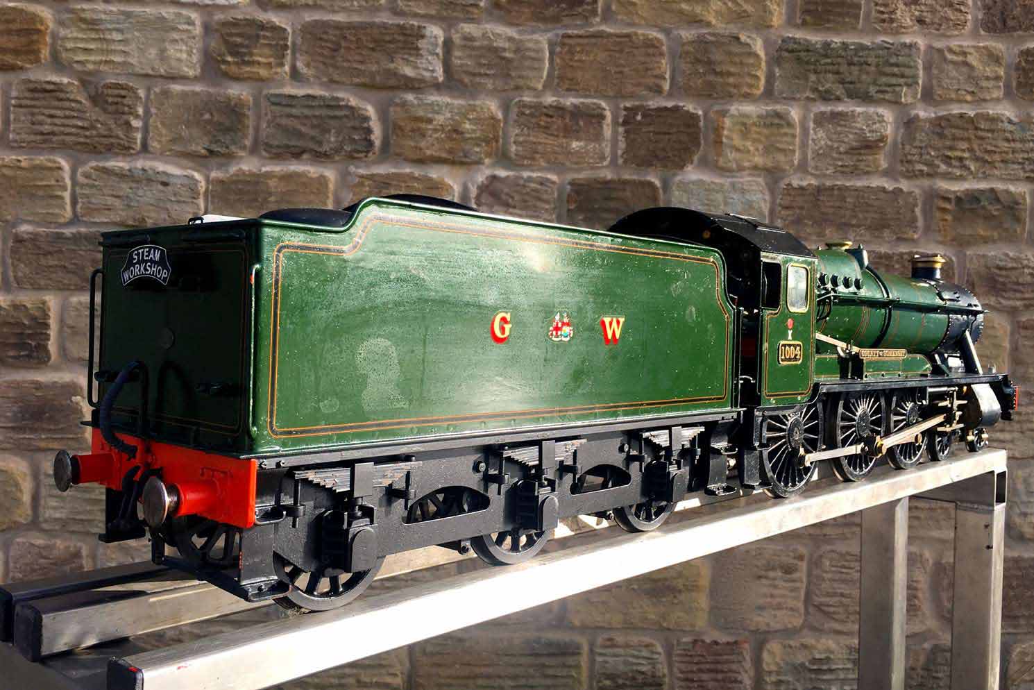 Here we have a nicely made 3 1/2" GWR Hawksworth County, 1004 'County of Somerset'. We've had a few GWR counties through before and they make a nice looking model, and the design certainly seems to perform well. There's a lot of nice detail on this one, the model engineer has certainly taken his time on the build and not just built to the drawings. The tender particularly, as you'll see from the photos has a very good level of detail with all the tool lockers there and working,...... not something that you usually find on a 3 1/2" model.