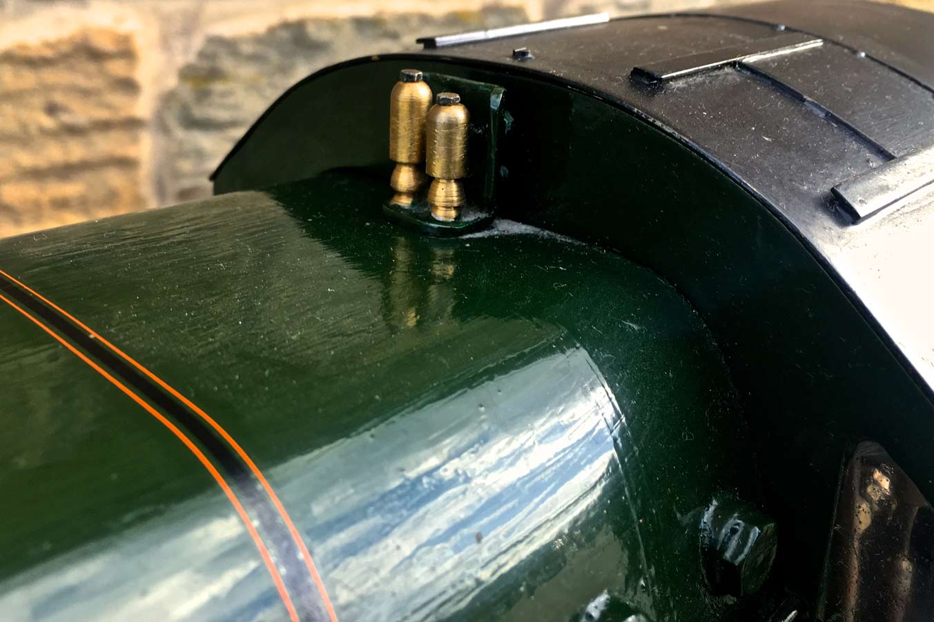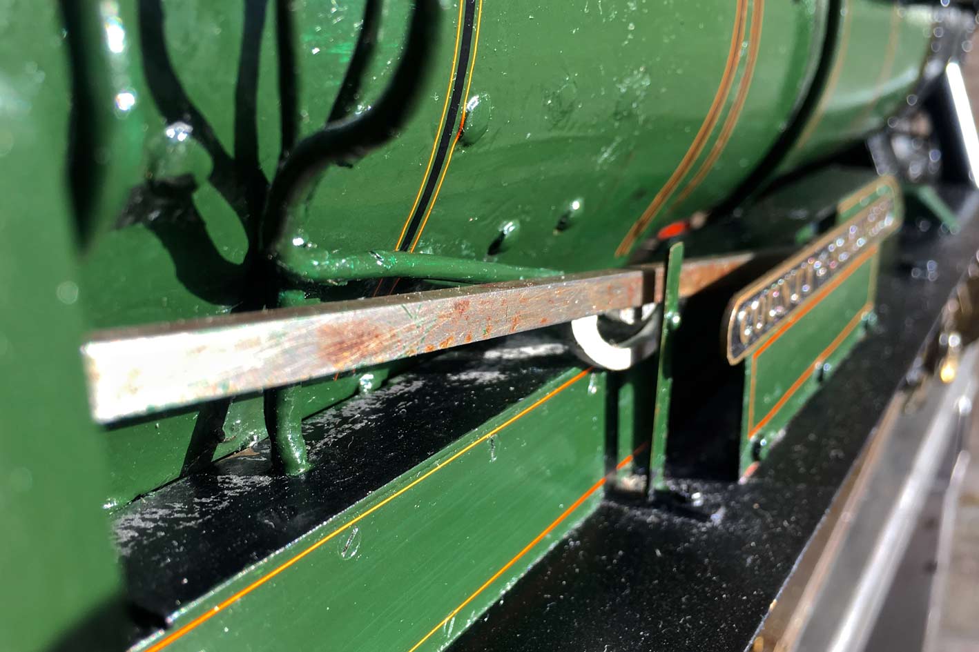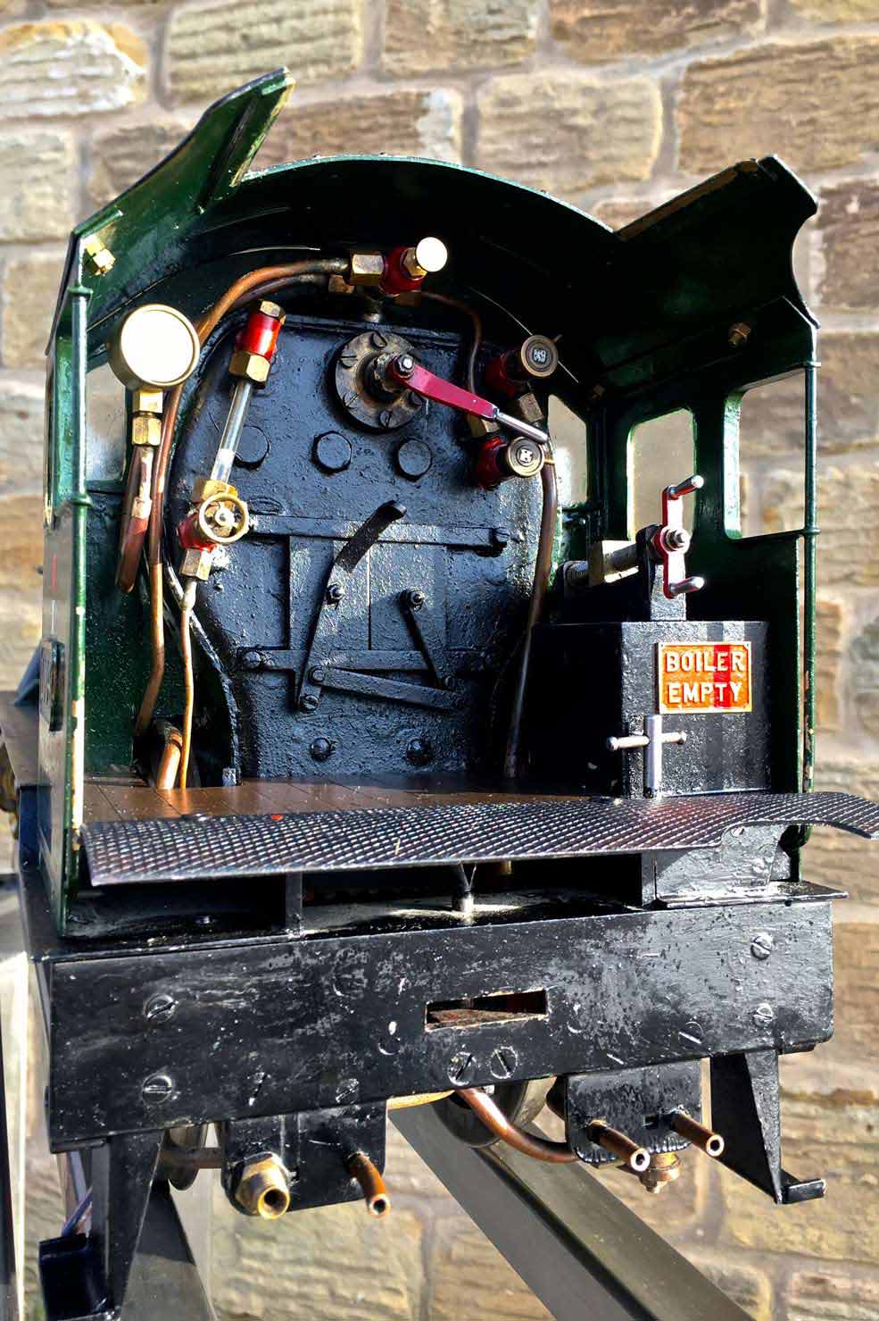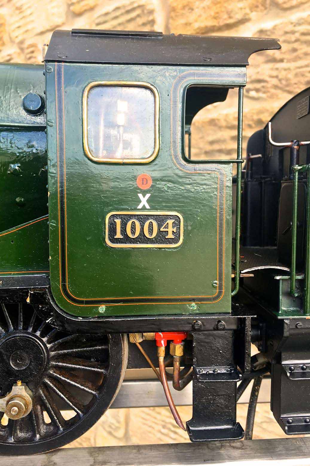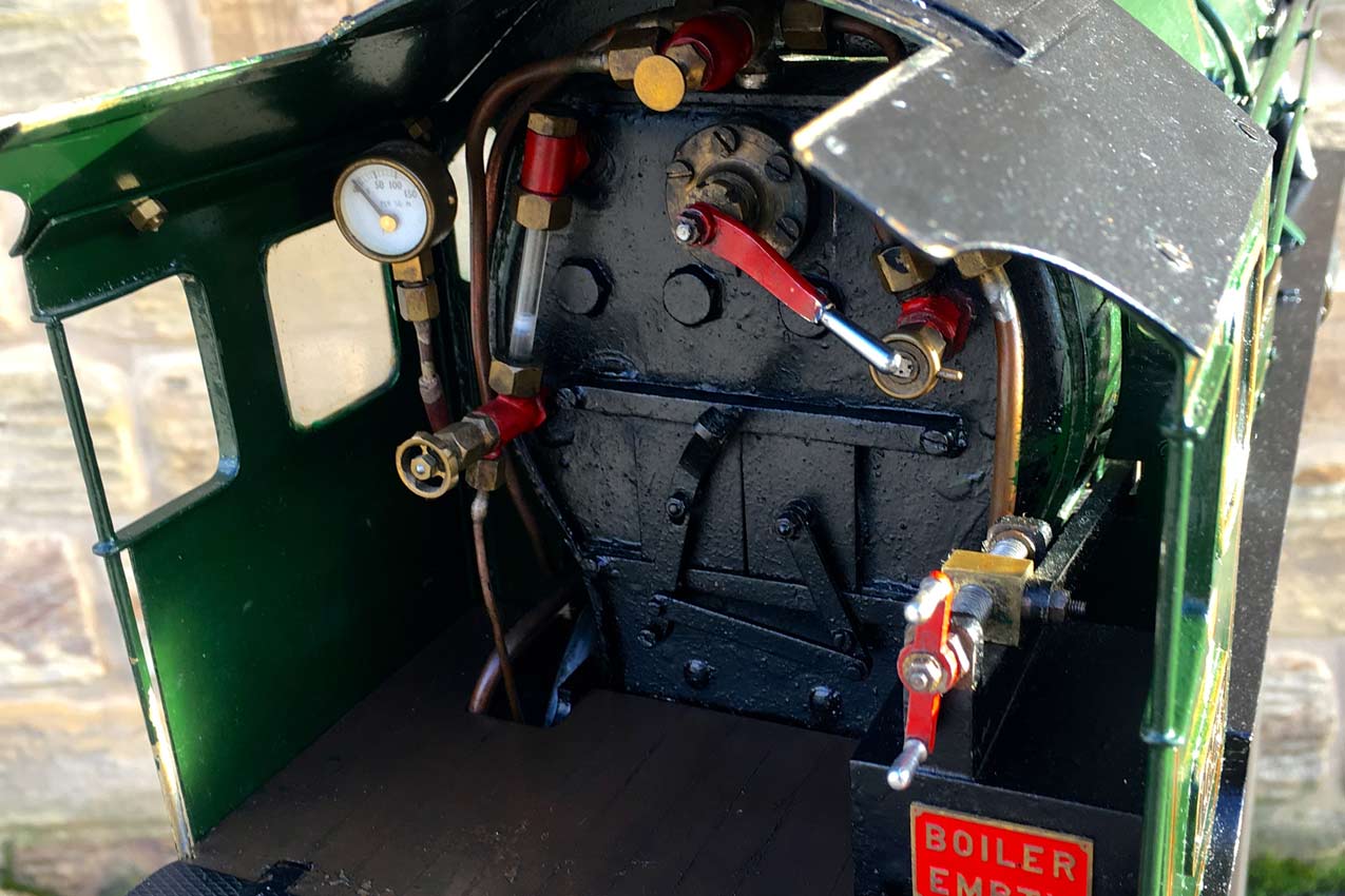 Fitted with an injector, a crosshead pump on the right hand side and a hand pump in the tender. Lubrication is mechaical and hidden under the front running board in the usual manor. The boiler is silver soldered copper and can come with the usual twice working pressure hydraulic test and fresh annual steam test.