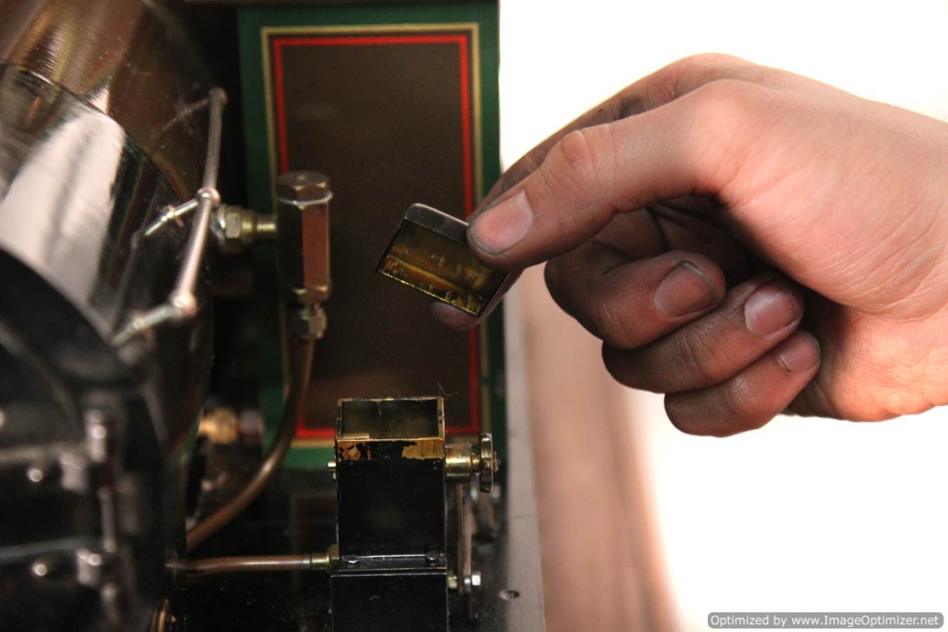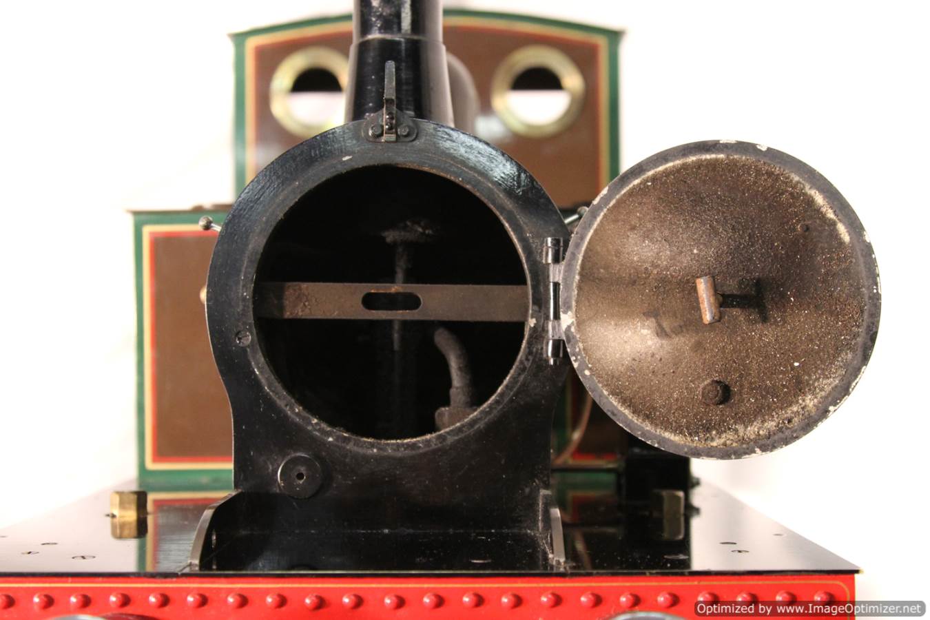 She is fitted with an injector and a mechanical axle driven pump, with of course a footplate mounted bypass valve. There is a big mechanical lubricator on the running boards and there is even a vacuum brake ejector fitted for running train brakes!