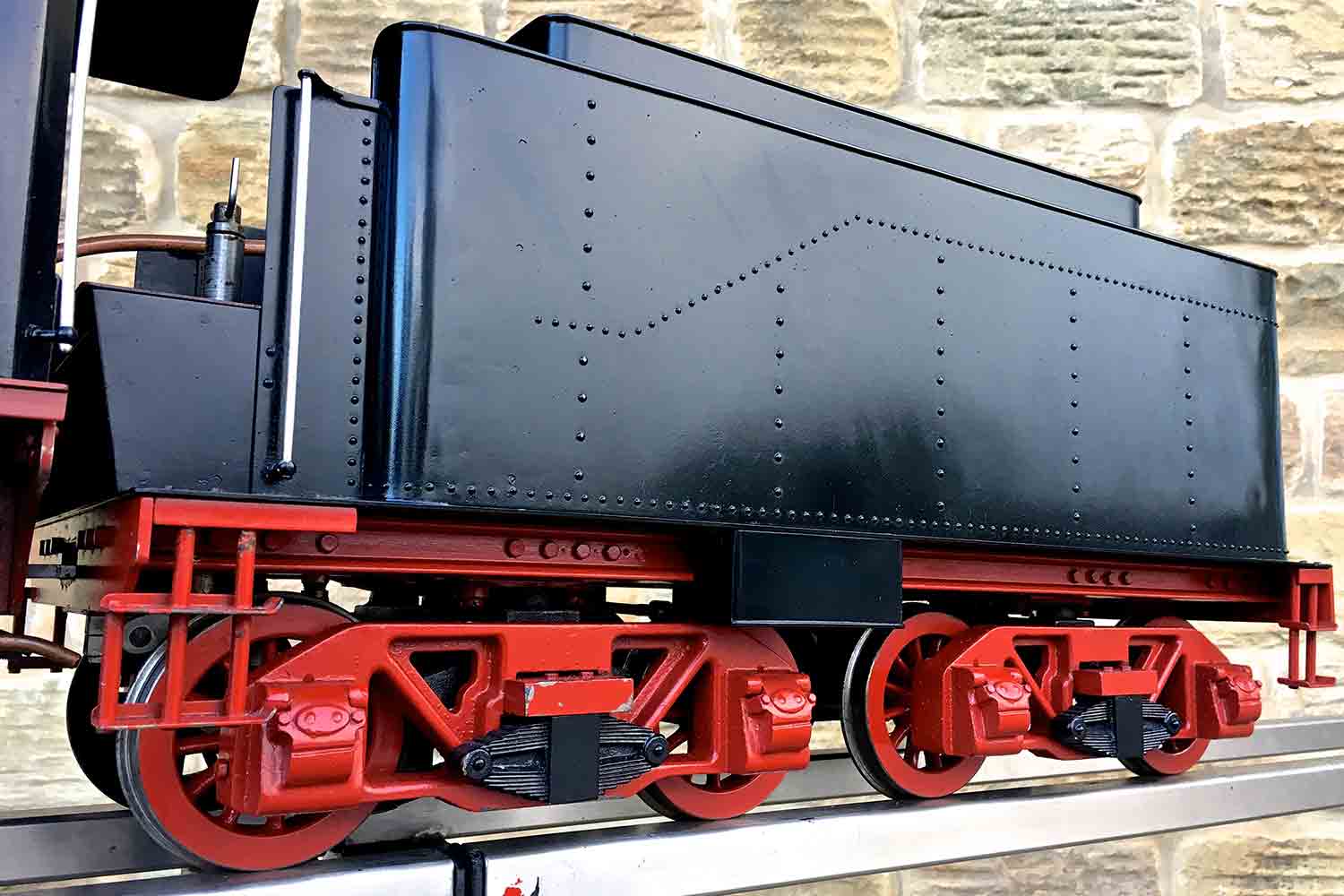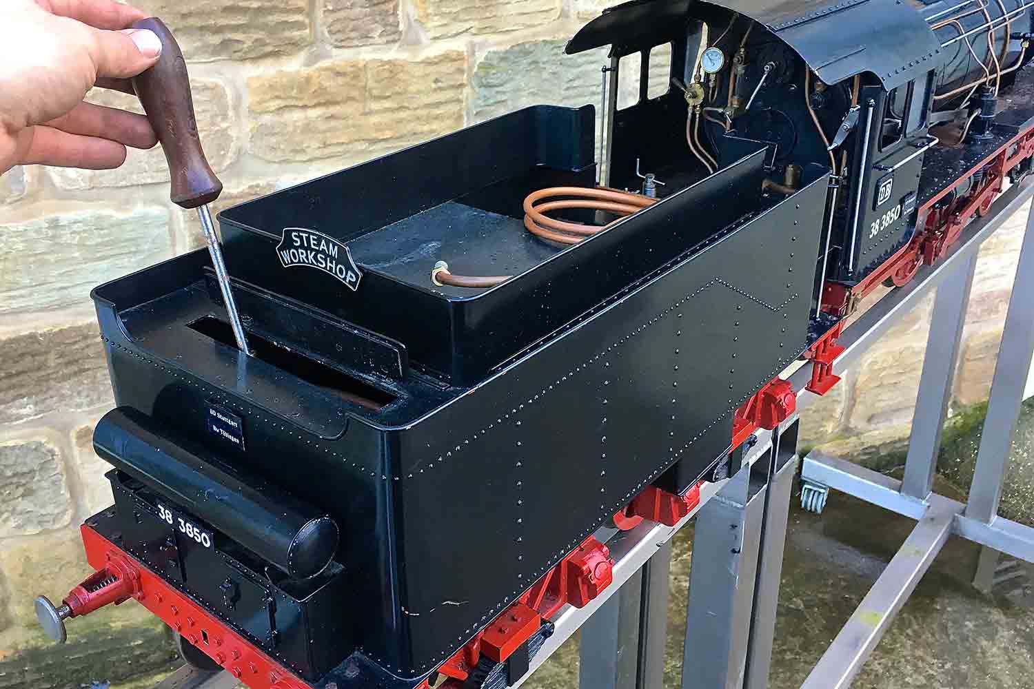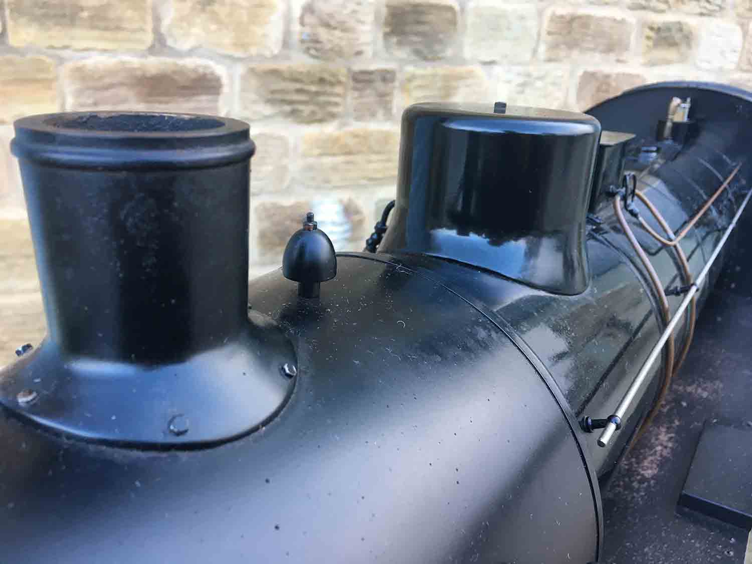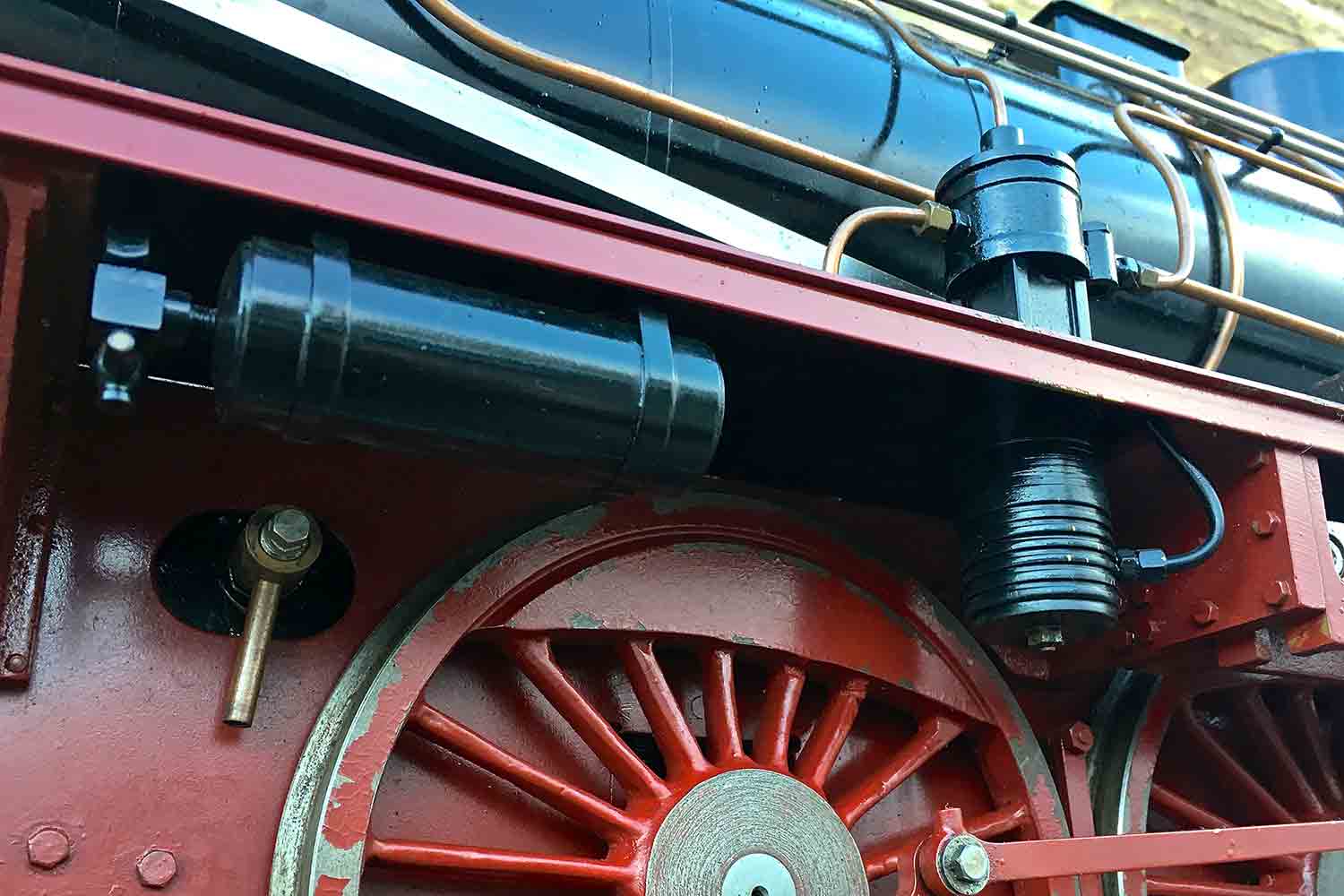 There is an injector, an axle pump with footplate mounted bypass and a hand pump in the tender. Lubrication is mechanical and hidden in the usual place under the front footplate.