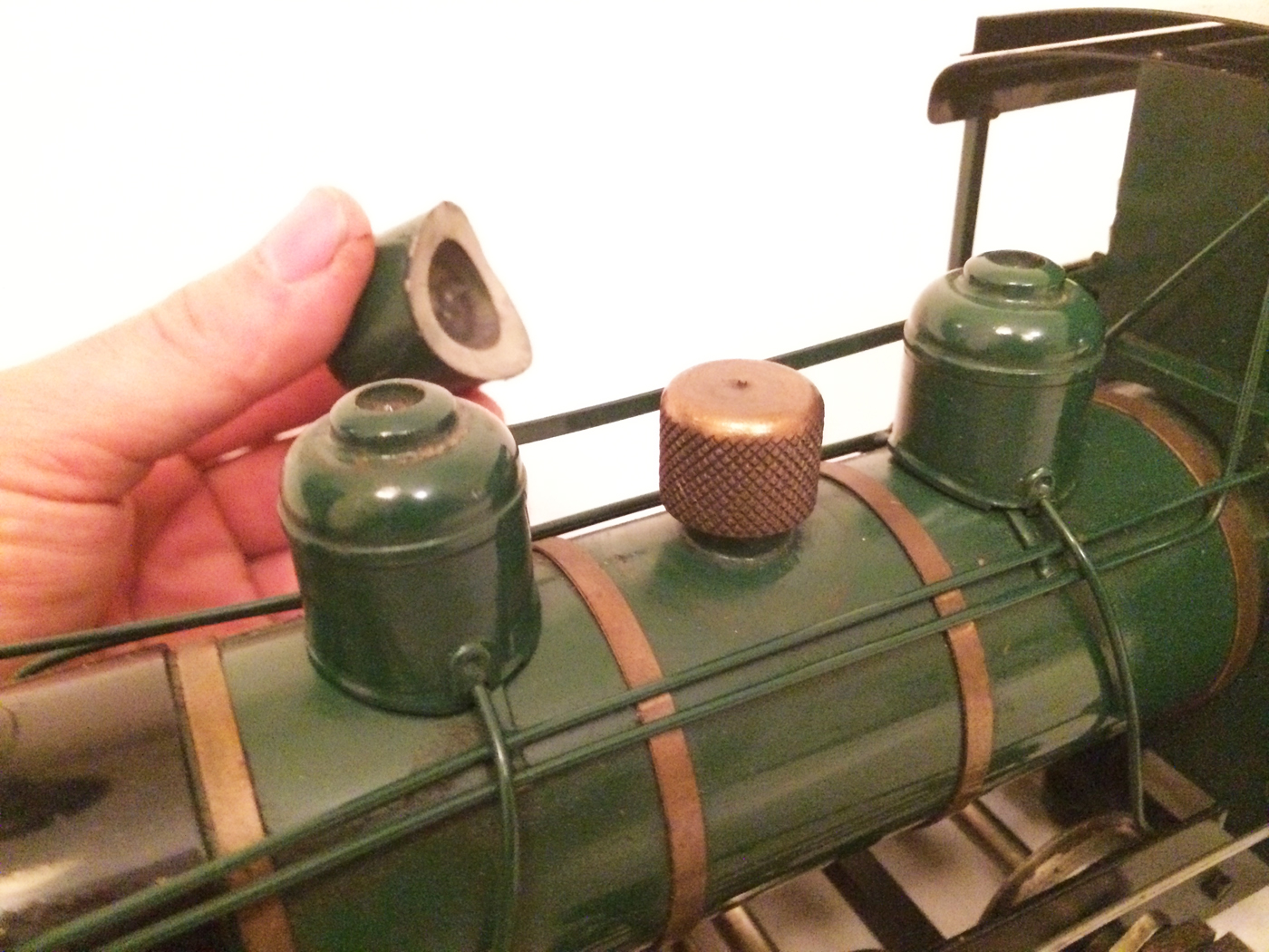 We steamed up yesterday, and it was remarkably easy to run. It's gas tank fills very easily through the hidden valve in the roof, and the burner lights equally easily, with a reassuring 'woof' through a lighter over the chimney. Steam comes round pretty quickly, and then it runs nice and freely both in forward and reverse.