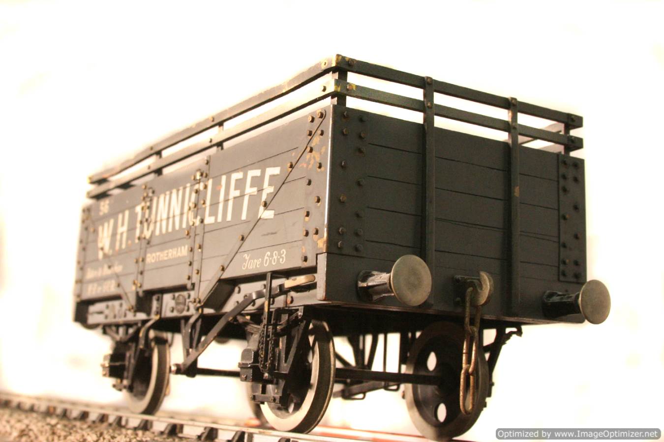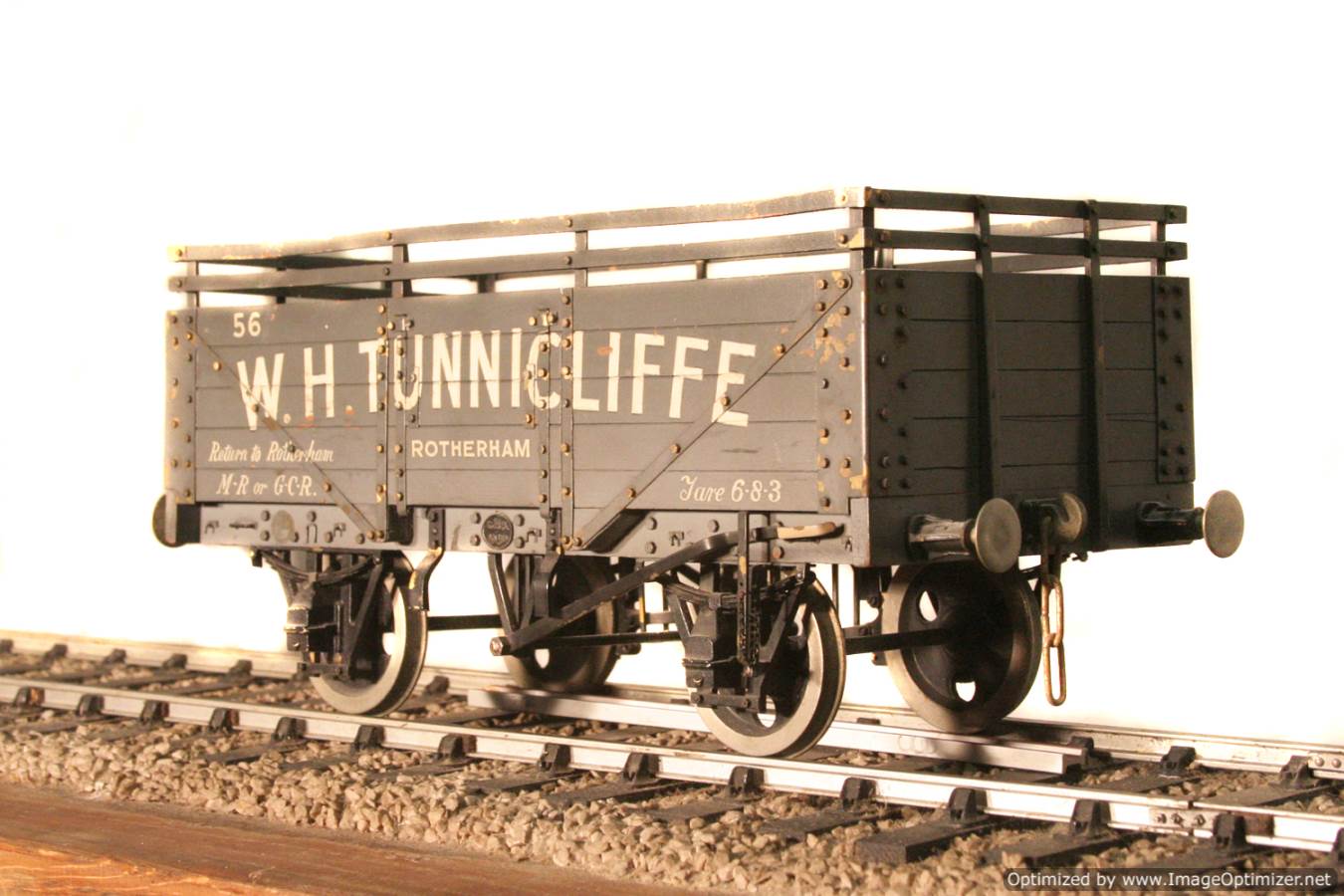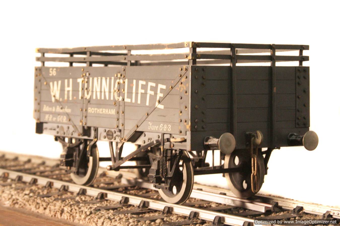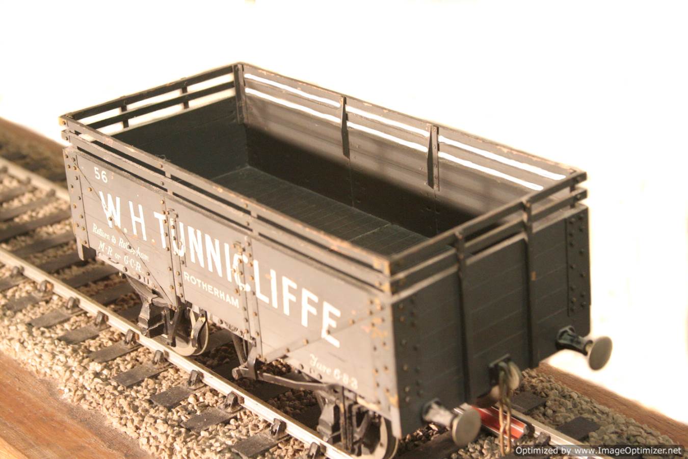 This is a W.H.Tunnicliffe Colliery 5 plank wagon, and it's a professionally scratch built one off with loads of finesse. Hopefully the photographs will do the model justice. A rare thing and part of the rake that came in together that we are listing at this time, and that it would be lovely to keep together if at all possible.