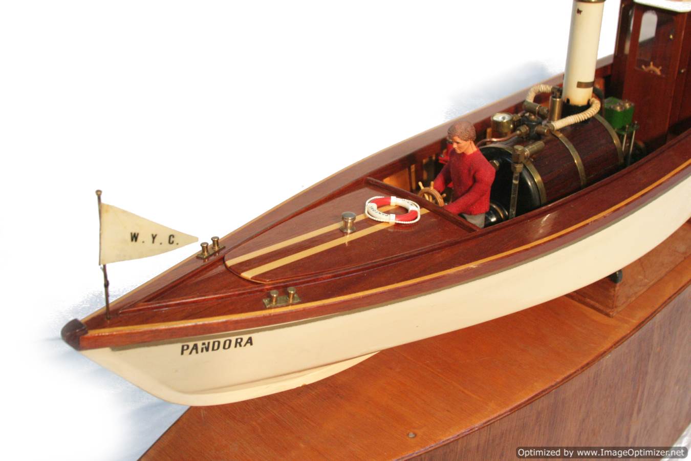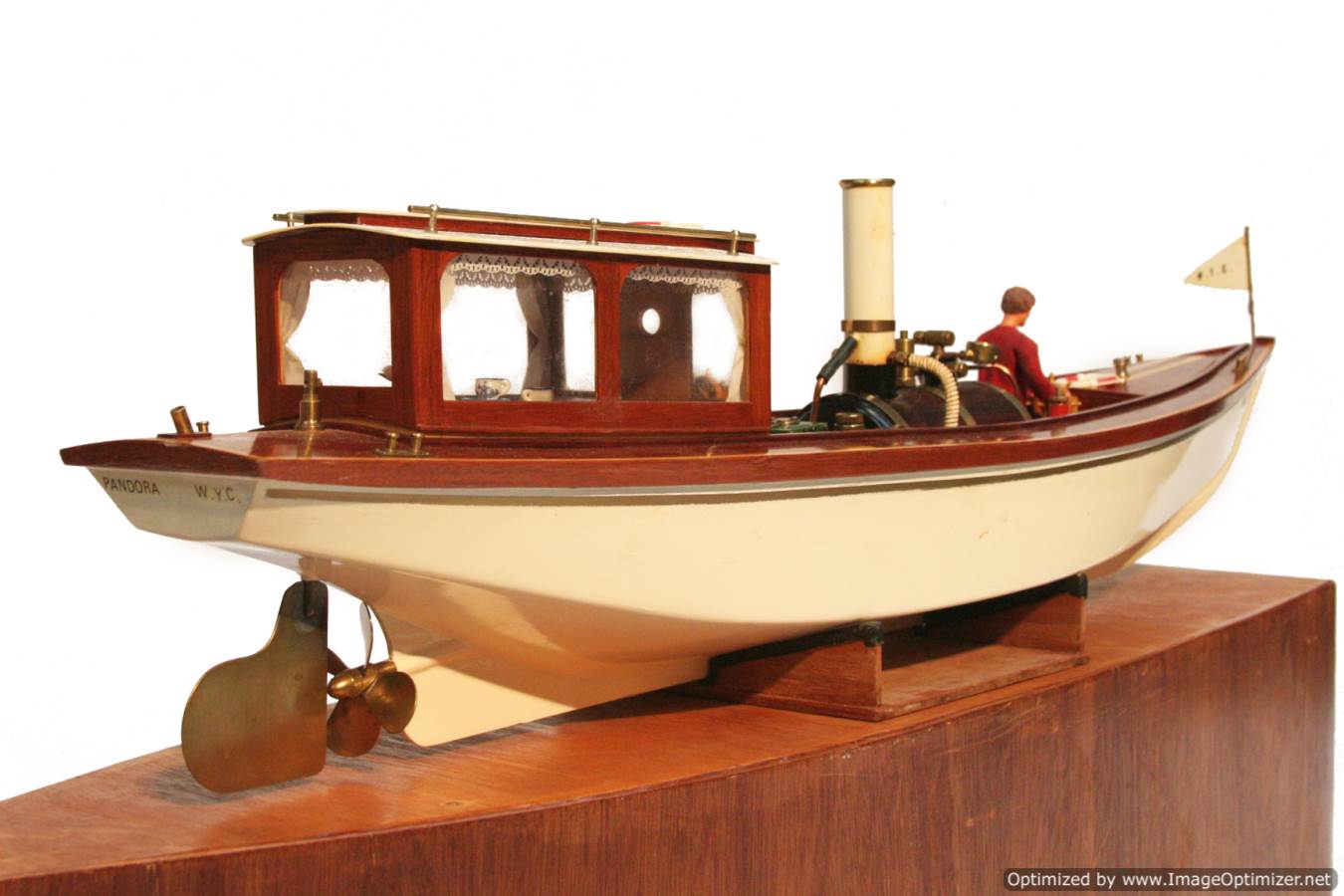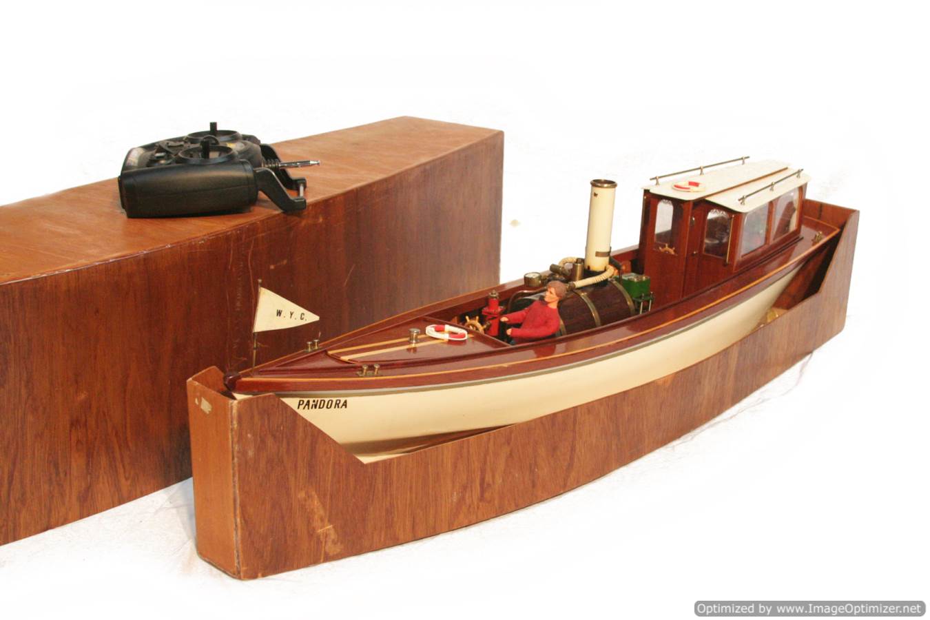 Here we have a lovely little Windermere steam launch named 'Pandora'. Powered by a fully certificated gas fired Cheddar boiler and 'Gemini' twin cylinder steam engine, this is a well constructed and ready to play model.