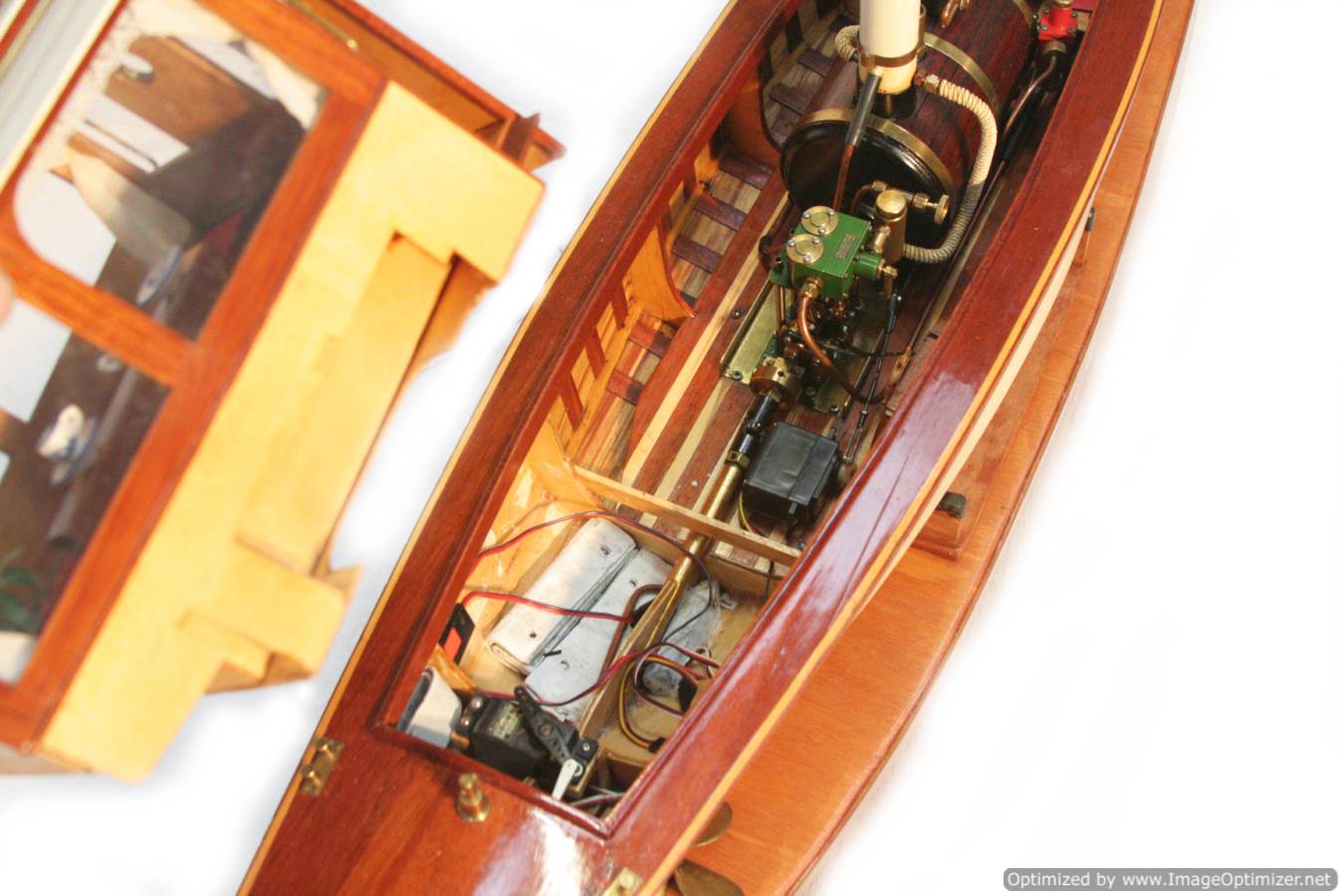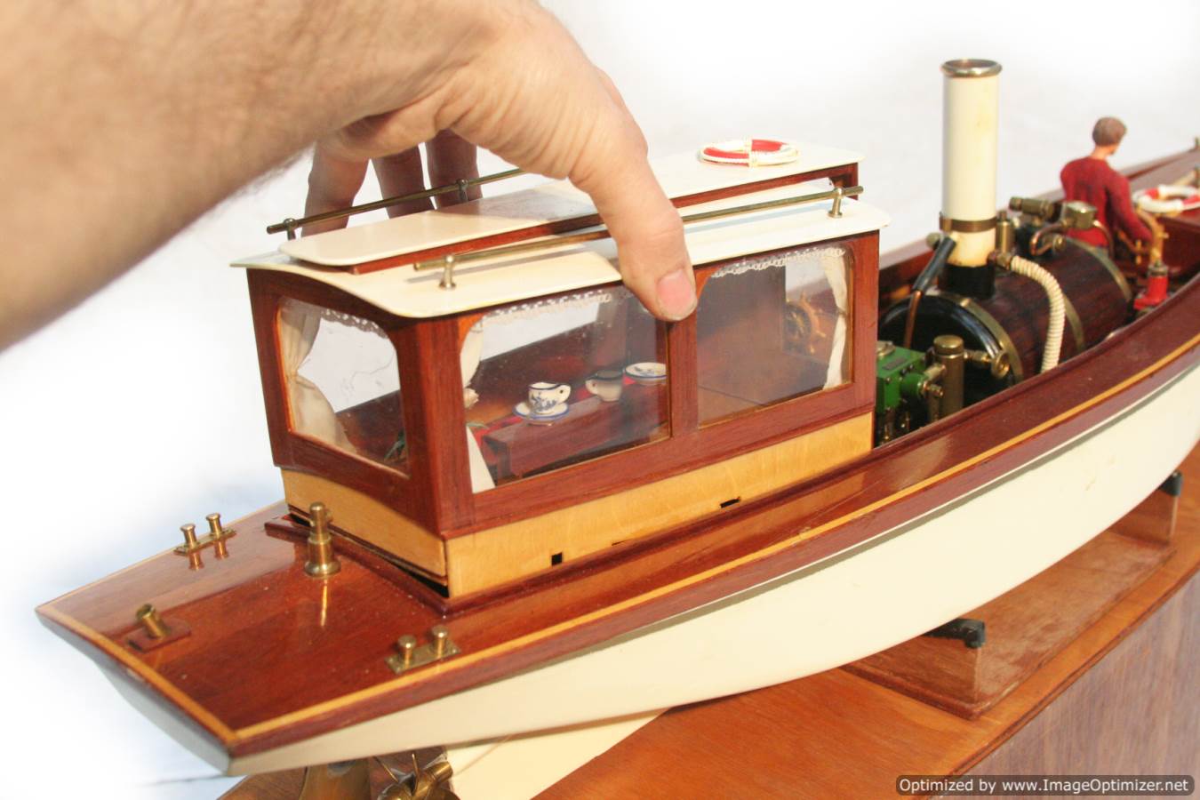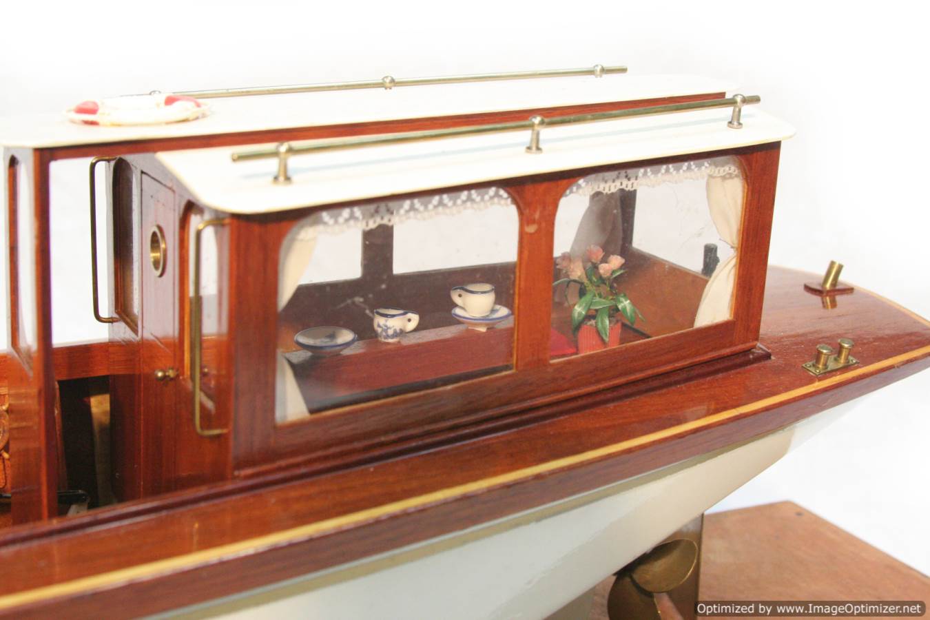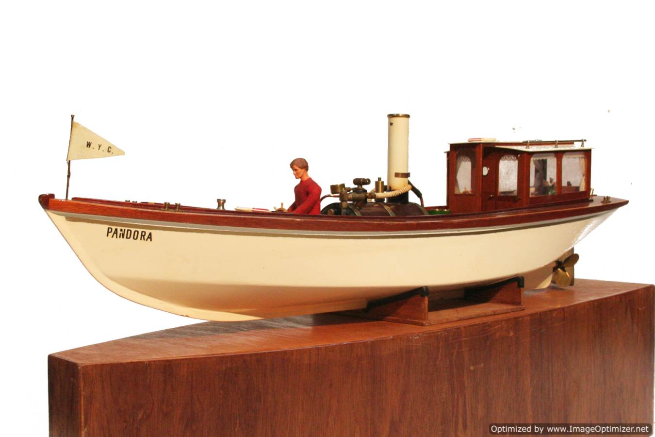Here we have a lovely little Windermere steam launch named 'Pandora'. Powered by a fully certificated gas fired Cheddar boiler and 'Gemini' twin cylinder steam engine, this is a well constructed and ready to play model.