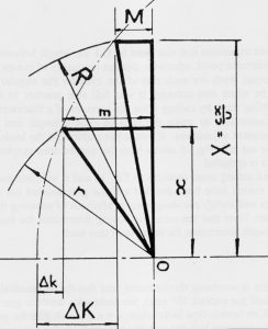 Expansion links should not swing more than 25° for mechanical exigency. This limit is embedded into the spreadsheet and subsequent calculations conclude the exact amount of trunnion offset to counter inherent errors. It should be understood that this is carried out for 50% stroke and 50% cut off, the position of worst error, and therefore does not absolve the designer from good sense in providing proportions to gain the finest of distribution throughout the whole working range – if the design is good this procedure will enable excellence in events; if not it will merely make the best of a bad job. Improper suspension will counter any good initial design. Where convenient, placing the weighshaft ahead of the link can be advantageous, as revealed by the excellent equality to be found on the old LNWR Coal tank 0-6-0s.